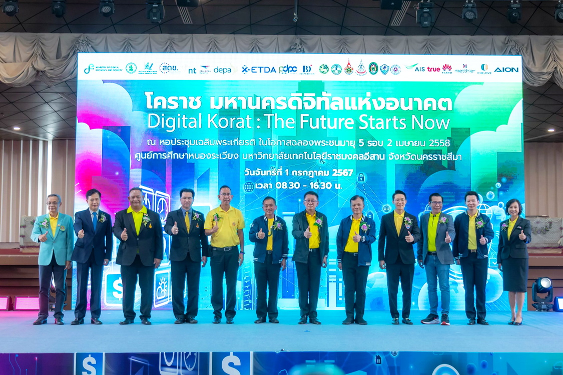 นายเศรษฐา ทวีสิน นายกรัฐมนตรี ให้เกียรติเป็นประธานเปิดกิจกรรมอบรมสัมมนา หัวข้อ “Digital Korat: The Future Starts Now – โคราช มหานครดิจิทัลแห่งอนาคต” โดยกระทรวงดิจิทัลเพื่อเศรษฐกิจและสังคม มีวัตถุประสงค์เพื่อสร้างความเข้าใจในการขับเคลื่อนการใช้งานดิจิทัลในส่วนภูมิภาคให้กับส่วนราชการและประชาชนได้ตระหนักถึงการใช้ประโยชน์ดิจิทัล ยกระดับการดำเนินงานภาครัฐ ผ่านการใช้ระบบเอกสารอิเล็กทรอนิกส์เพื่อขับเคลื่อนสู่การทำงานแบบไร้กระดาษ (Paperless) การนำข้อมูลดิจิทัลมาวิเคราะห์เพื่อการแก้ไขปัญหาและพัฒนาจังหวัด พร้อมทั้งยกระดับคุณภาพชีวิตประชาชน ให้สามารถเข้าถึงบริการภาครัฐผ่านช่องทางดิจิทัลตามแนวทางของรัฐบาล รวมทั้งร่วมลงนามบันทึกข้อตกลงความร่วมมือ (MOU) ด้านการพัฒนากำลังคนดิจิทัลของ 3 มหาวิทยาลัยในจังหวัดนครราชสีมา ได้แก่ มหาวิทยาลัยเทคโนโลยีราชมงคลอีสาน มหาวิทยาลัยเทคโนโลยีสุรนารี และมหาวิทยาลัยราชภัฏนครราชสีมา โดยรัฐมนตรีว่าการกระทรวงดิจิทัลเพื่อเศรษฐกิจและสังคม ให้เกียรติเป็นสักขีพยานในพิธีลงนามครั้งนี้ด้วย