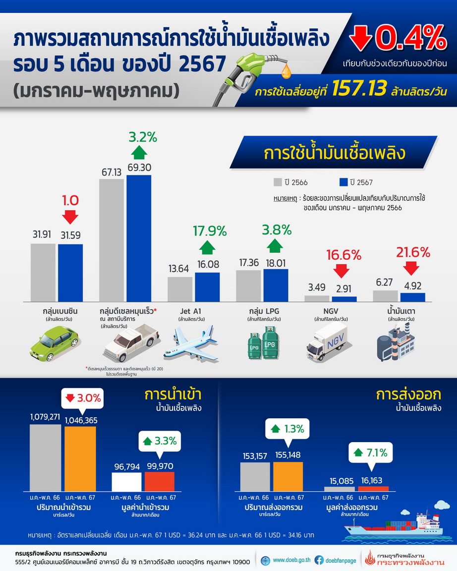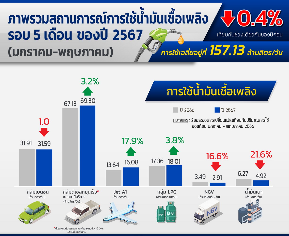สถานการณ์การใช้น้ำมันเชื้อเพลิงรอบ 5 เดือน ประจำปี 2567 (มกราคม – พฤษภาคม)
