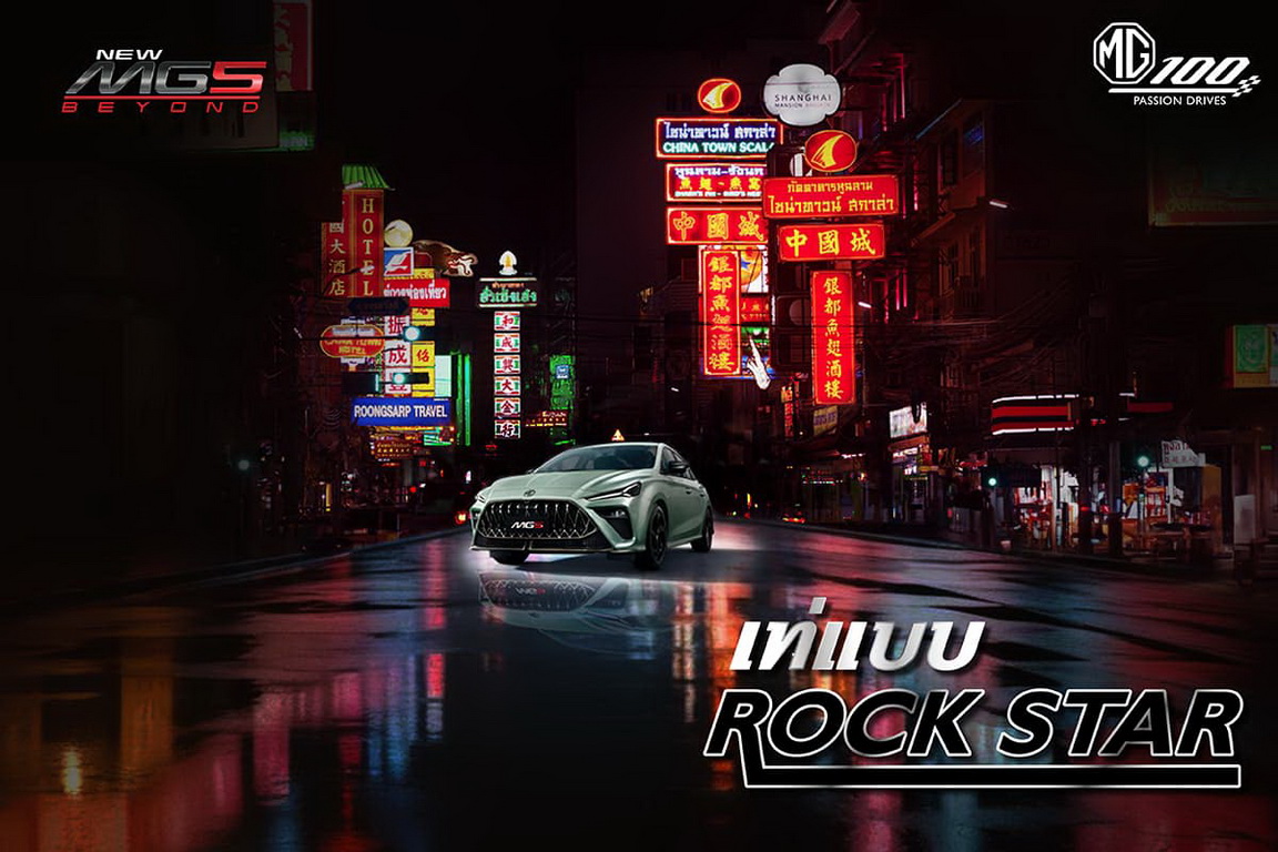 เพจ MG จับ NEW MG5 เช็คอินที่เยาวราช พร้อมข้อความ “ความเท่แบบ Rock Star ถือกำเนิดขึ้นแล้ว กับ NEW MG5 ไม่ว่าใครขับก็เท่”