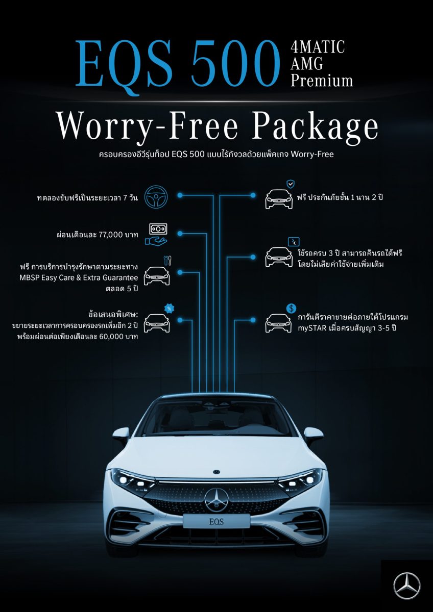 เบนซ์ เขย่าวงการรถยนต์ไฟฟ้า มอบ 7 ข้อเสนอพิเศษ EQS 500 4MATIC AMG Premium ด้วยโปรแกรมทางการเงินและการบำรุงรักษารถในรูปแบบ “Worry-Free Package” แพ็กเกจสุดเอ็กซ์คลูซีฟที่มาพร้อมข้อเสนอพิเศษมากมาย