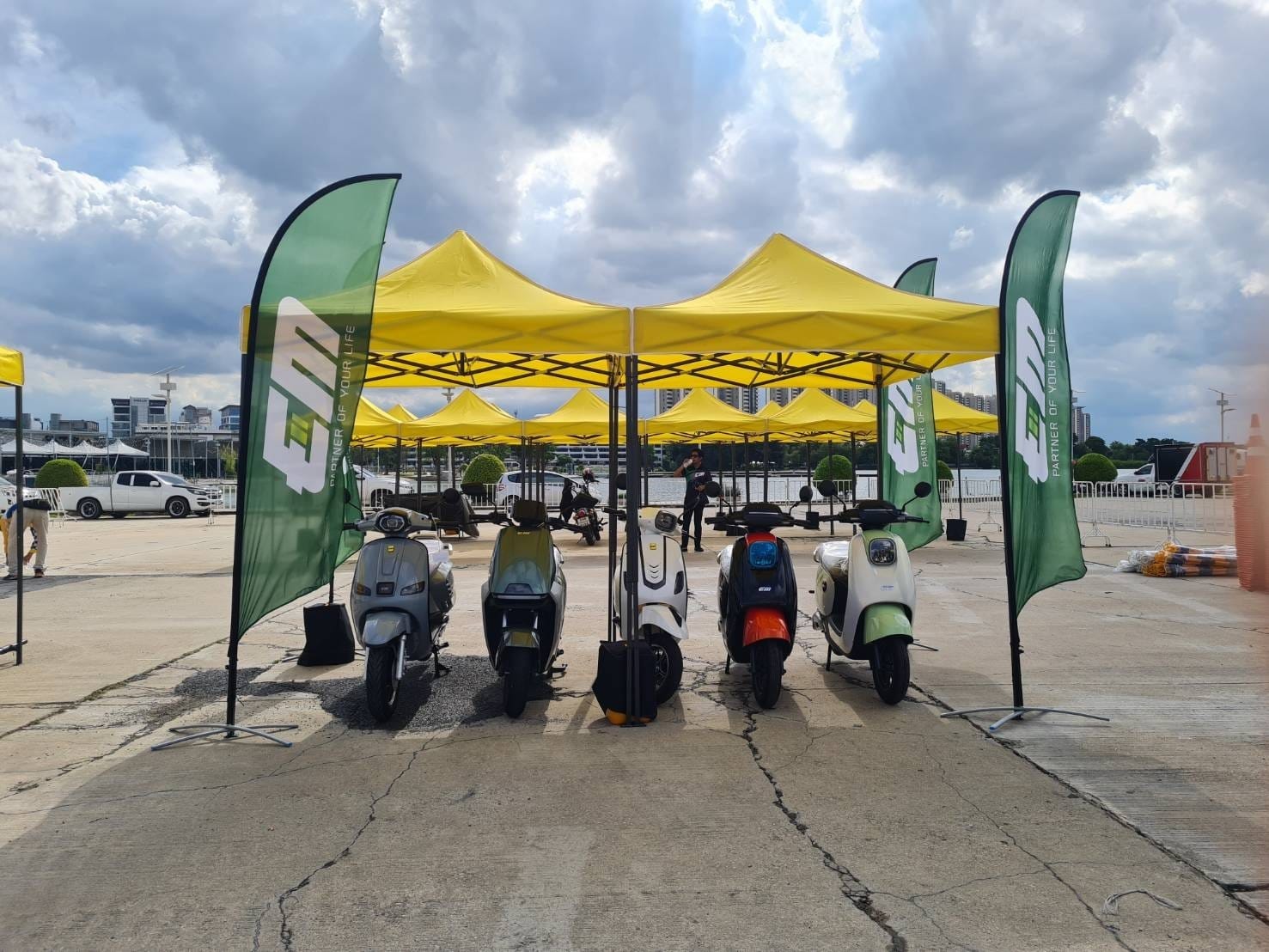 งานนี้มีค่ายรถ EV และมอเตอร์ไซค์ไฟฟ้าส่งรถมาให้ทดลองขับกันหลายค่าย อย่างรถยนต์ไฟฟ้าก็มี BYD , NETA , MG , Wuling Binguo