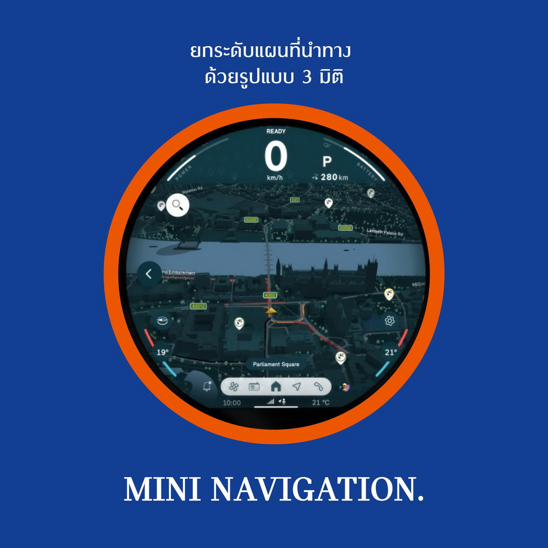 MINI Navigation ขยายขอบเขตการนำทางด้วยรูปแบบ 3 มิติ มาพร้อมเทคโนโลยีที่อัปเดตข้อมูลแบบ Real time ที่จะทำให้การเดินทางสะดวกสบายมากขึ้น