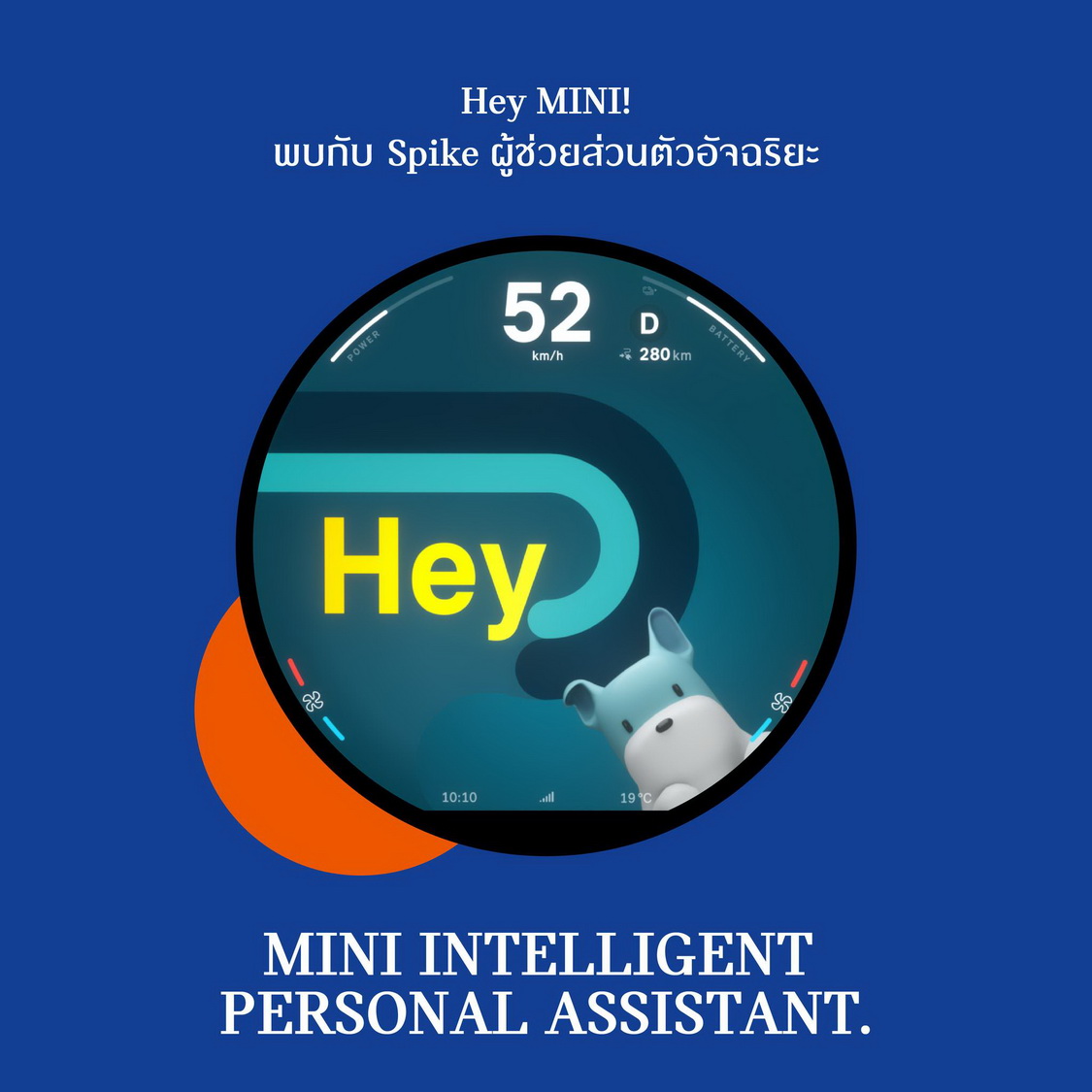 MINI Intelligent Personal Assistant เตรียมส่งเสียง ‘Hey MINI!’ เพื่อพบกับผู้ช่วยส่วนตัวอัจฉริยะ Spike บนหน้าจอ แล้วพูดคำสั่งที่คุณต้องการได้เลย