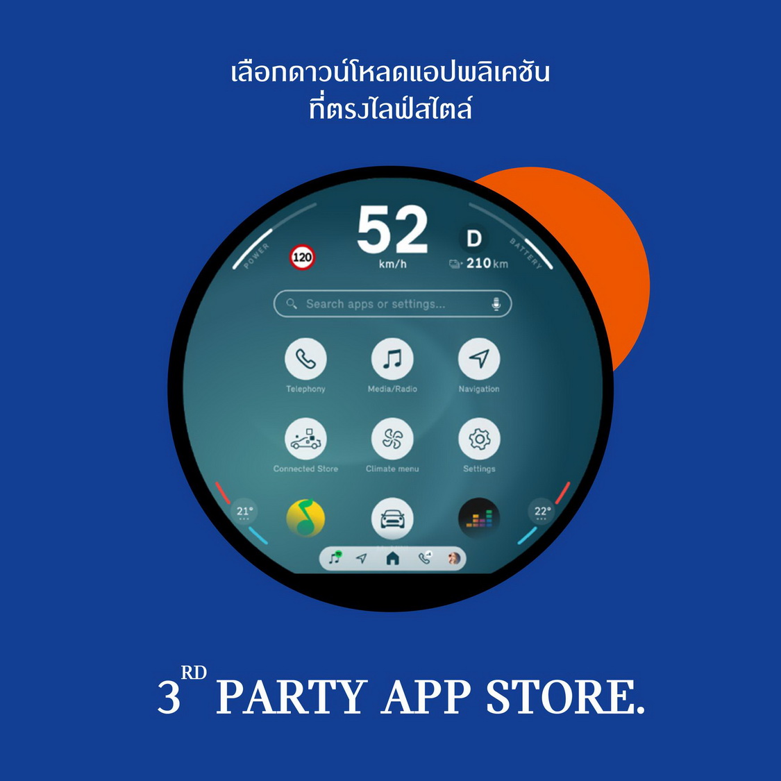 MINI Third-Party App Store เลือกโลกดิจิทัลที่เป็นตัวคุณเอง ดาวน์โหลดแอปพลิเคชัน เช่น เพลง, เกม, ข่าวสาร หรือสตรีมมิ่งต่างๆ ได้ และผสานการใช้งานกับหน้าจอทรงกลมได้อย่างสมบูรณ์แบบ