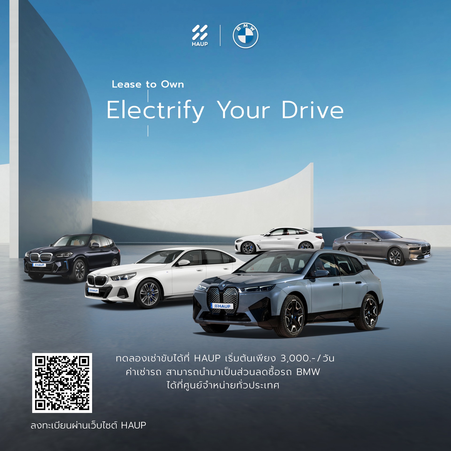 BMW จับมือ HAUP จัดแคมเปญ BMW x HAUP l Electrify Your Drive ให้สัมผัสประสบการณ์จริงในการขับรถยนต์ไฟฟ้าของ BMW ไม่ว่าจะเป็น THE iX3 , THE i4 , THE FIRST-EVER BMW i5 , THE iX และ THE i7 ในราคาเริ่มต้นเพียง 3,000 บาท/วัน ตั้งแต่วันนี้ - 10 ต.ค. 2567