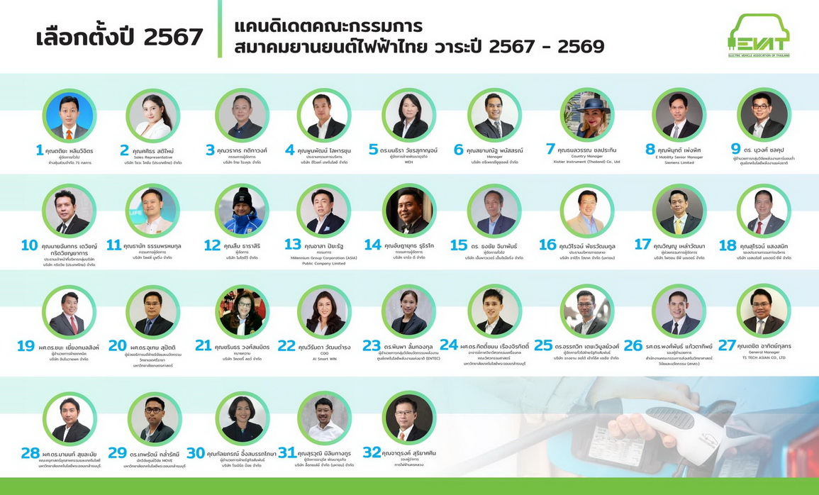 การประชุมใหญ่สามัญประจำปีของ สมาคมยานยนต์ไฟฟ้าไทย Electric Vehicle Association of Thailand - EVAT ประจำปี 2567 มีวาระเลือกตั้งกรรมการและนายกสมาคมคนใหม่ สำหรับปี 2567-2569 ซึ่งผลลัพธ์เป็นไปตามความหมาย นายสุโรจน์ แสงสนิท ได้รับความไว้วางใจจากกรรมการสมาคมชุดใหม่อย่างเป็นเอกฉันท์ ให้รับตำแหน่งนายกสมาคมฯ คนที่ 3 รับงานต่อจากคุณกฤษฎา อุตตโมทย์ นายกสมาคมยานยนต์ไฟฟ้าไทยคนที่ 2 เพื่อสานต่อพันธกิจต่างๆของสมาคมต่อไป