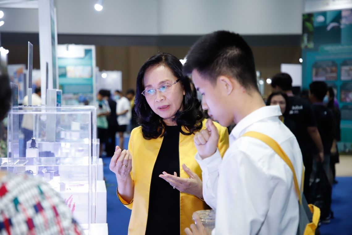 โอกาสนี้ ดร.ชุติมา เอี่ยมโชติชวลิต ผู้ว่าการ สถาบันวิจัยวิทยาศาสตร์และเทคโนโลยีแห่งประเทศไทย (วว.) ดร.จิตรา ชัยวิมล รองผู้ว่าการบริการอุตสาหกรรมพร้อมคณะผู้บริหารและบุคลากร วว. ร่วมเฝ้าฯ รับเสด็จ ในการนี้ ผู้ว่าการ วว. เป็นผู้แทนกราบบังคมทูลรายงานกิจกรรมโซน E ซึ่งประกอบด้วย บูธ วว.สถาบันมาตรวิทยาแห่งชาติ (มว.) วิทยาลัยชุมชน (วชช.) และศูนย์ความเป็นเลิศทางด้านชีววิทยาศาสตร์ (TCELS) ในวันที่ 22 กรกฎาคม 2567 ณ ศูนย์สิริกิติ์ฯ