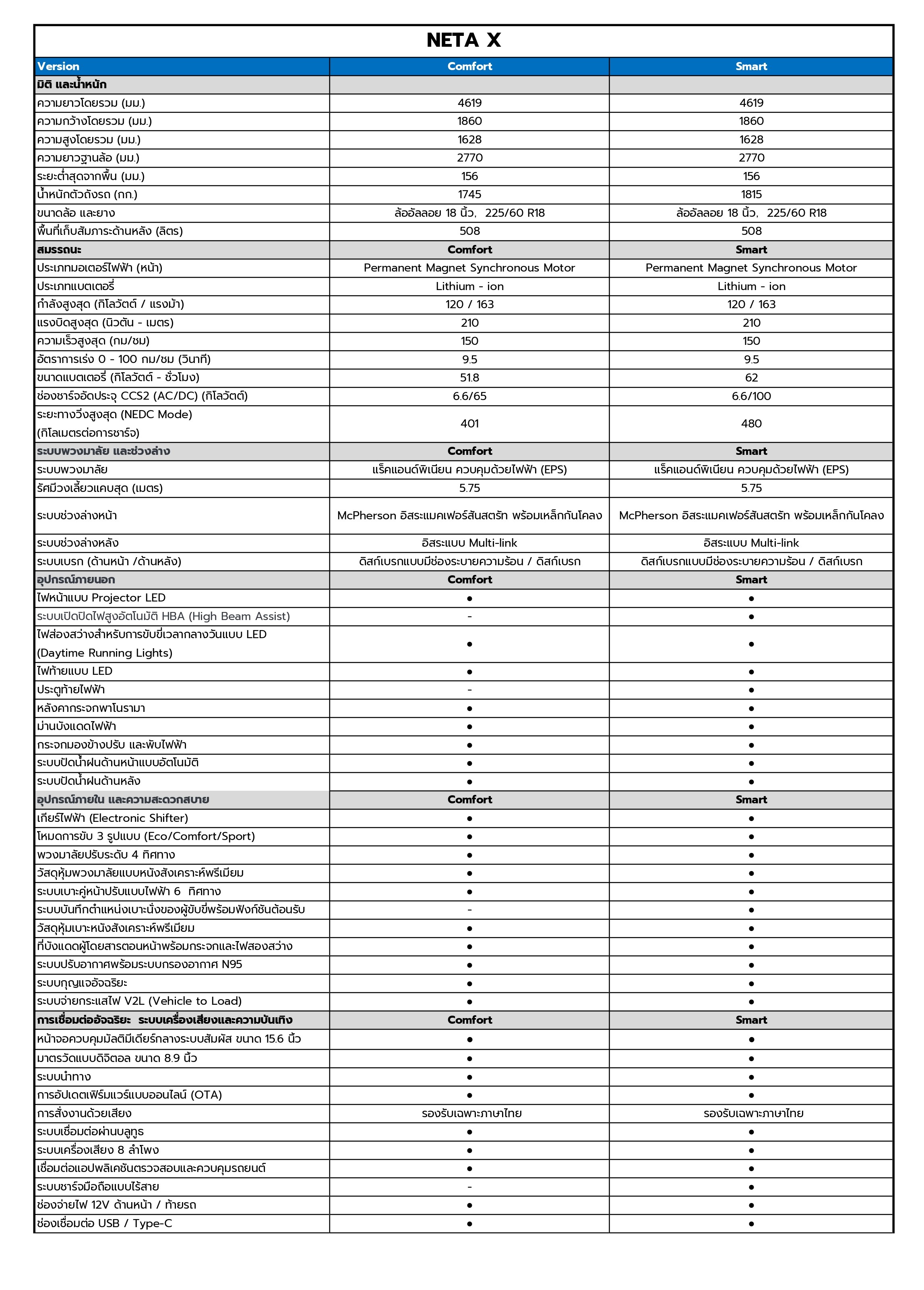 NETA X รุ่น Comfort ราคา 739,000 บาท และ NETA X รุ่น Smart ราคา 799,000 บาท