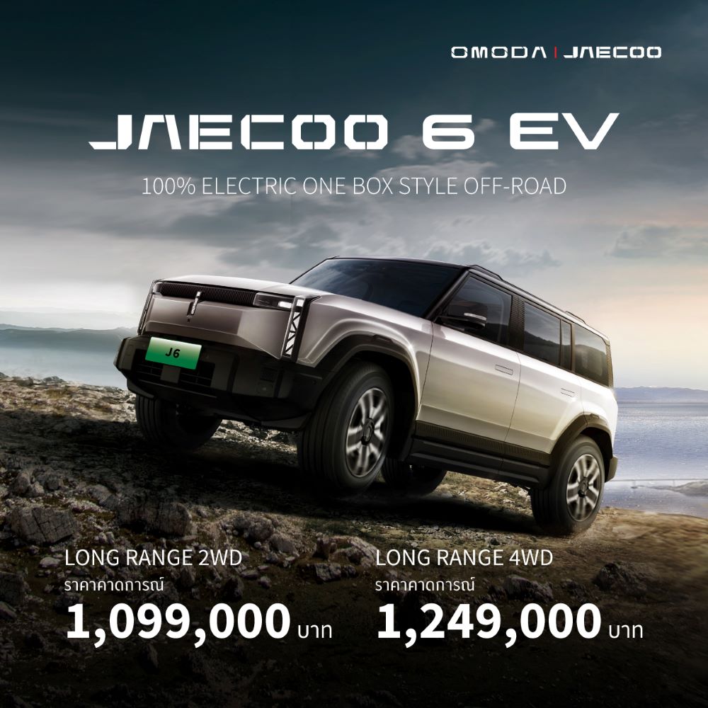 ครั้งแรกกับการเปิดราคา JAECOO 6 EV รถออฟโรดพรีเมียมพลังงานไฟฟ้า 100% ผสมผสานความคลาสสิกเข้ากับเทคโนโลยียานยนต์ ที่อัดแน่นไปด้วยพลังสุดแข็งแกร่ง สร้างสรรค์จิตนาการไร้ขอบเขตด้วยดีไซน์ E-CUBE ทรงกล่อง มาพร้อมนวัตกรรมใหม่ภายใต้คอนเซ็ปต์ “OFF-ROAD TRENDY” ที่เต็มไปด้วยพลังสุดแข็งแกร่งและสุนทรียะงดงาม มาพร้อมสมรรถนะการขับขี่บนพื้นผิวที่หลากหลาย ทั้งทางลาดชันขึ้นภูเขา ลุยน้ำ ลุยป่า ไปจนถึงทะเลทราย