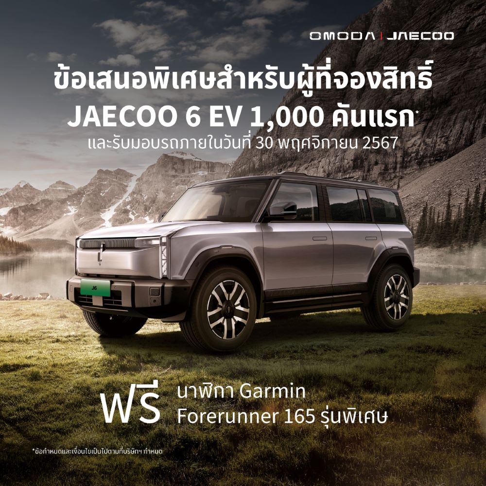 ข้อเสนอพิเศษสำหรับผู้ที่จองสิทธิ์ JAECOO 6 EV 1,000 คันแรก และรับมอบรถภายใน 30 พฤศจิกายน 2567