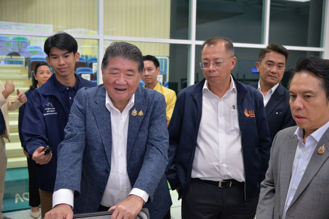 รองนายกรัฐมนตรี ภูมิธรรม และคณะ ได้ติดตามความก้าวหน้าพร้อมร่วมรับฟังการบรรยายสรุปโครงการ EECd และ โครงการ EECi ซึ่งเป็นโครงการภายใต้เขตส่งเสริมเศรษฐกิจพิเศษในพื้นที่อีอีซี เพื่อรองรับการลงทุนอุตสาหกรรมด้านดิจิทัล และศูนย์กลางนวัตกรรมเชื่อมโยงการวิจัยและการลงทุนเทคโนโลยีขั้นสูง และเป็นการสร้างโอกาสสำคัญ เพื่อเสริมสร้างความสามารถการแข่งขันทางเศรษฐกิจของประเทศไทย นอกจากนี้ คณะฯ รองนายกรัฐมนตรี ยังได้เข้าเยี่ยมชมศูนย์ประกอบและทดสอบดาวเทียม (Assembly Integration and Testing : AIT) ที่แสดงถึงความก้าวหน้าด้านอุตสาหกรรมเทคโนโลยีอวกาศ ที่รองรับการพัฒนาอุตสาหกรรมขั้นสูงในอนาคตต่อไป