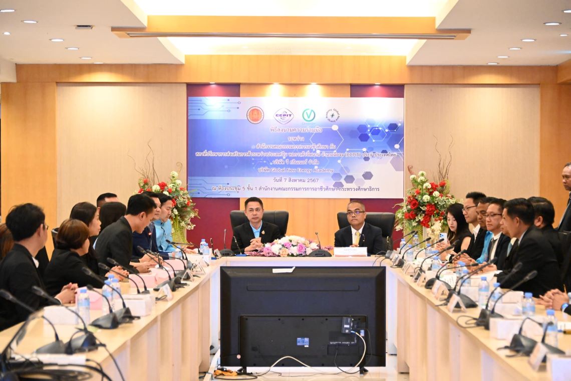 สอศ. ร่วมกับ CCPIT ประเทศจีน บริษัท วี กรีนเนอร์ จำกัด และ Global New Energy Academy ลงนามความร่วมมือพัฒนาหลักสูตรด้านยานยนต์ไฟฟ้าและพลังงานสะอาดที่ทันสมัยให้กับนักศึกษาอาชีวศึกษา ให้เรียนจบและสามารถเข้าสู่ตลาดแรงได้