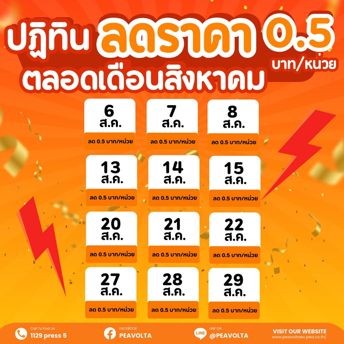 ปฏิทินลดราคาของ PEA VOLTA เดือนสิงหาคม 2567