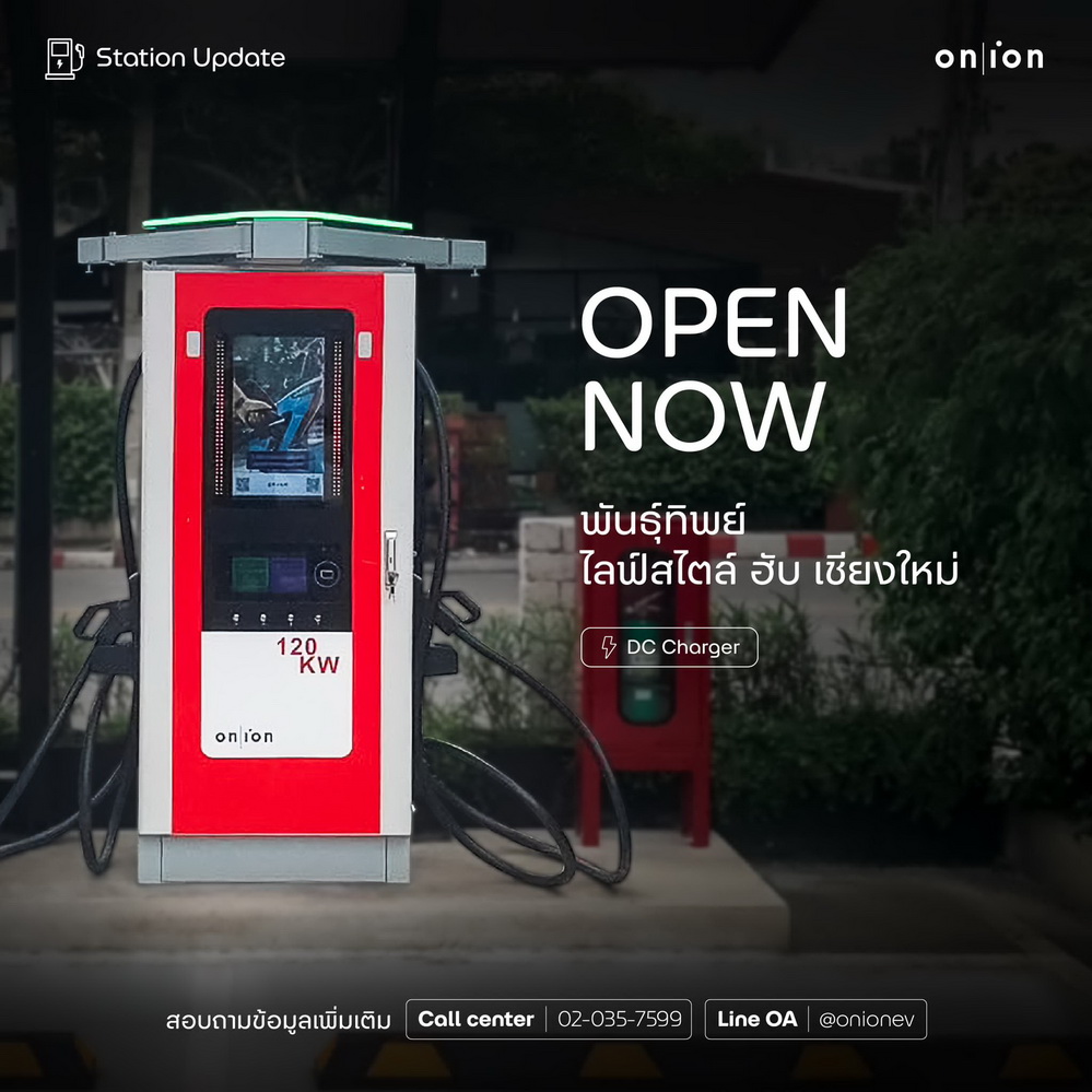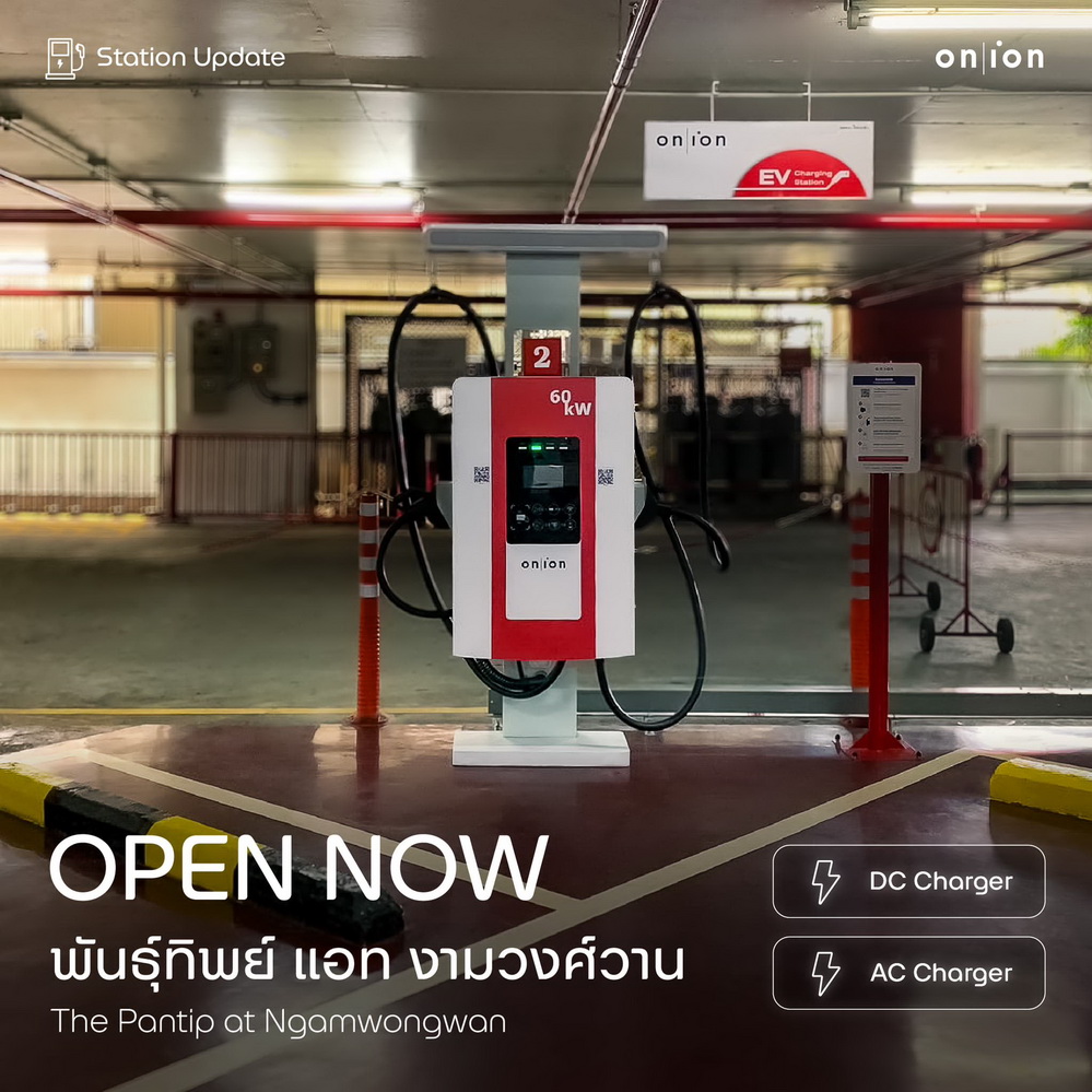 on-ion สถานี The Pantip Lifestyle Hub Chiang Mai (พันธุ์ทิพย์ ไลฟ์สไตล์ ฮับ เชียงใหม่) ศูนย์กลางช้อป ชิล กิน ดื่ม ย่านการค้าใจกลางเมืองเชียงใหม่ ให้บริการด้วยเครื่องชาร์จ DC 120 kW จํานวน 1 เครื่อง 2 ช่องจอด ค่าบริการ 8.5 บาท/kWh ค่าช่องจอด 10 บาท/ชั่วโมง เปิดบริการทุกวัน เวลา 09:00 - 22:00 น.