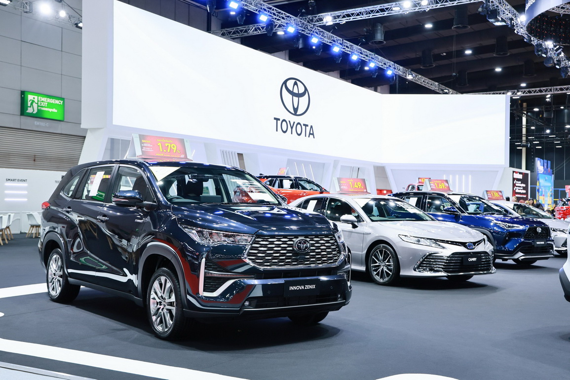 นายณัทธร ศรีนิเวศน์ ผู้ช่วยกรรมการผู้จัดการใหญ่ บริษัท โตโยต้า มอเตอร์ ประเทศไทย จำกัด กล่าวต้อนรับสื่อมวลชนสู่บูธโตโยต้าว่า “ปีนี้เรามาด้วยแนวคิด “บริการครบ จบ เหมือนยกโชว์รูมมา” ให้บริการลูกค้าแบบ one stop service นำเสนอรถโตโยต้าหลากหลายรุ่น และบริการการขายแบบครบวงจร เริ่มจากกลุ่มรถยนต์ไฮบริด นำทัพโดย Yaris Cross และ Corolla Cross ซึ่งเป็นรุ่นยอดนิยม ได้รับการตอบรับอย่างดีจากลูกค้าตั้งแต่เปิดตัวมา รวมถึงรถยนต์ HEV รุ่นอื่นๆ อีกหลายรุ่น เพื่อตอกย้ำความเป็นผู้นำตลาดรถยนต์ไฮบริดในประเทศไทยตั้งแต่พ.ศ. 2552 เป็นต้นมา