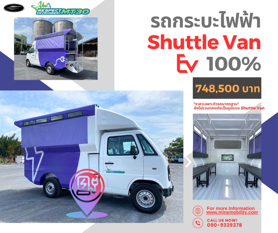 MINE MT30 รถกระบะไฟฟ้า 100% ที่ออกแบบมาเพื่อการขนส่งที่ทันสมัยและประหยัดพลังงาน ความจุผู้โดยสาร 12 ที่นั่ง ขับเคลื่อนด้วยพลังงานไฟฟ้า 100% ปลอดภัยต่อสิ่งแวดล้อม สามารถดัดแปลงเป็น Shuttle Van EV ได้ ราคาเริ่มต้น 748,500 บาท (ราคานี้สำหรับตัวรถมาตรฐาน ไม่รวมการตกแต่งเป็น Shuttle Van)