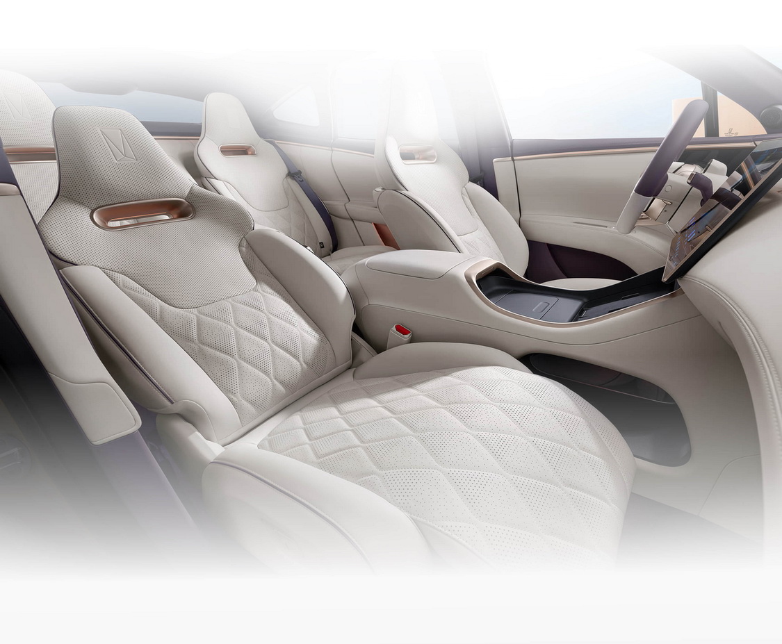 แผงหลังคาหุ้มด้วยวัสดุสังเคราะห์คล้ายกำมะหยี่ ด้านหน้าจอมีมาให้ถึง 3 จอ โดยหน้าจอที่แสดงข้อมูลการขับขี่จะมีขนาด 10.25 นิ้ว หน้าจอสำหรับผู้โดยสาร (ตอนหน้า) ที่ฝังไว้ตรงคอนโซล และจอมัลติฟังก์ชัน (ส่วนกลาง) แบบลอยตัวมีขนาด 15.6 นิ้ว โดยหน้าจอทั้งหมดทำงานผ่านซอฟต์แวร์ของ Huawei นอกจากนี้ยังติดตั้งระบบ Active Sound Enhancement ที่จะจำลองเสียงของเครื่องยนต์ในเวลาขับขี่มาให้ด้วย
