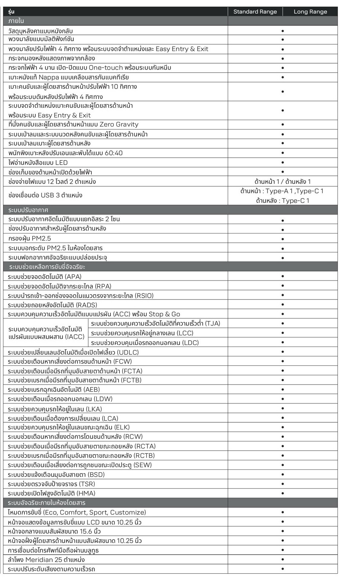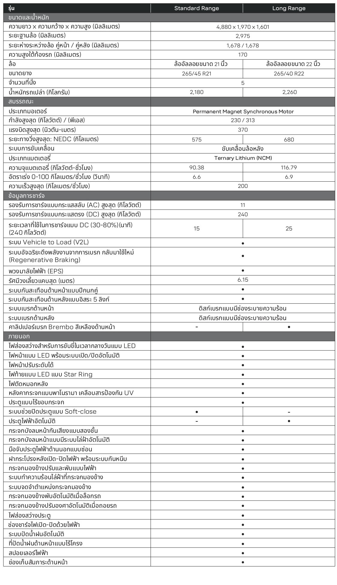 - มีระบบ V2L (VEHICLE TO LOAD) จ่ายกระแสไฟฟ้าให้อุปกรณ์ภายนอก สูงสุด 3.3 kW