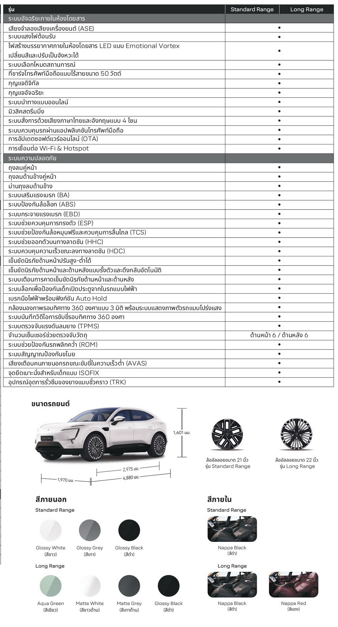 - AVATR 11 : 4,880 x 1,970 x 1,601 มม. | ฐานล้อ 2,975 มม.