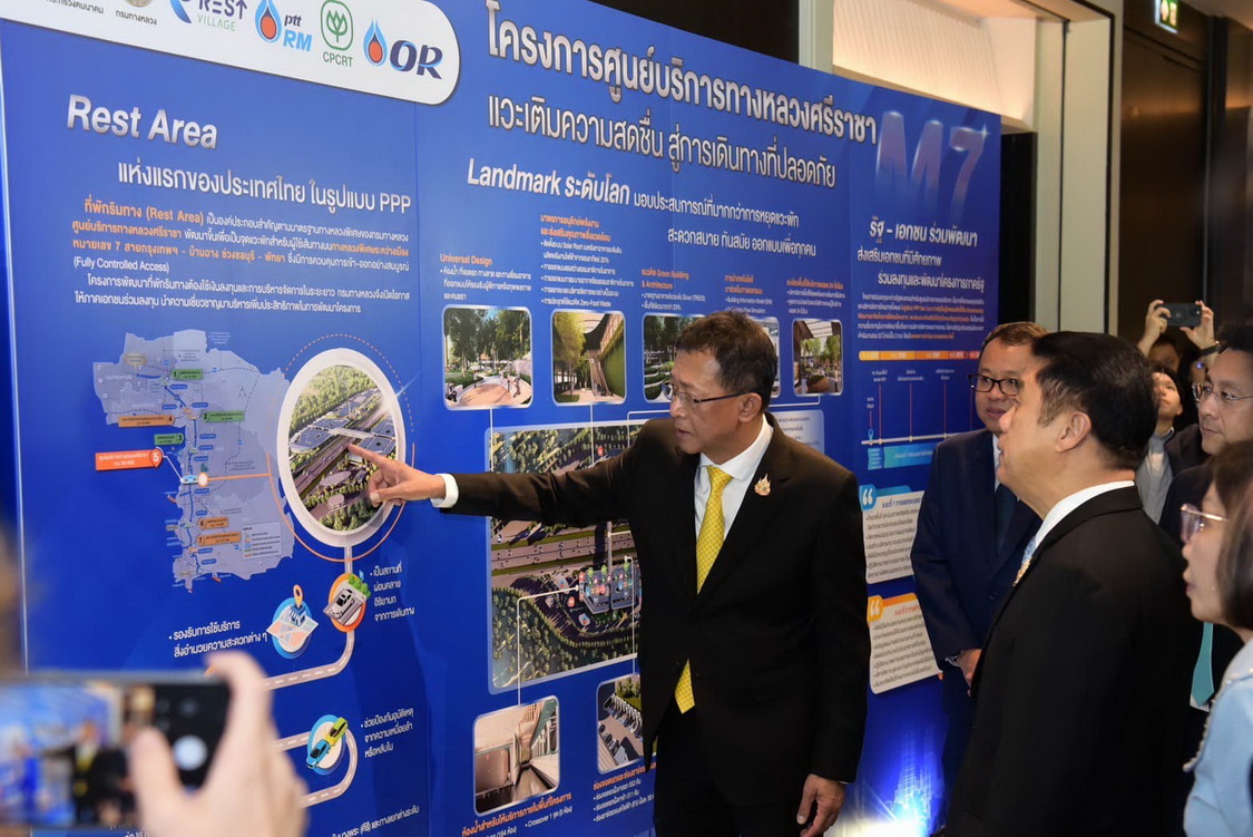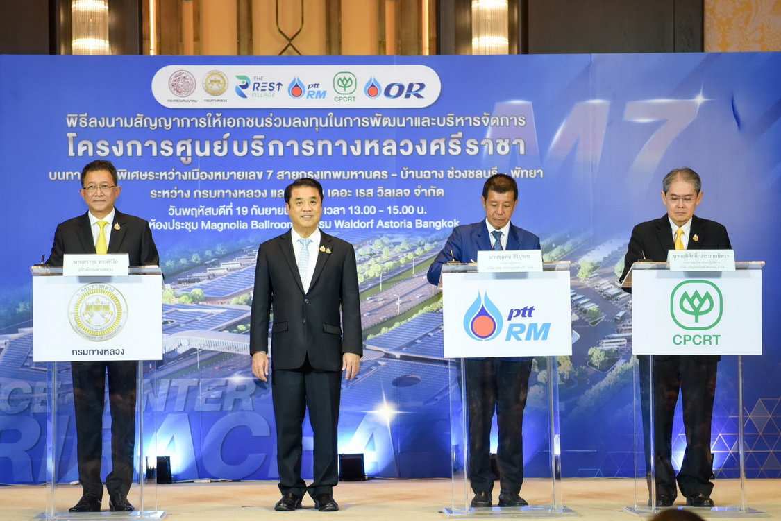 ในการลงนามดังกล่าว นายสุริยะ จึงรุ่งเรืองกิจ รองนายกรัฐมนตรี และรัฐมนตรีว่าการกระทรวงคมนาคม เป็นประธานและสักขีพยานในพิธีลงนามสัญญาการให้เอกชนร่วมลงทุนในการพัฒนาและบริหารจัดการโครงการศูนย์บริการทางหลวงศรีราชาบนทางหลวงพิเศษระหว่างเมืองหมายเลข 7 สายกรุงเทพมหานคร - บ้านฉาง ช่วงชลบุรี - พัทยา ระหว่าง กรมทางหลวง และ บริษัท เดอะ เรส วิลเลจ จำกัด โดยมี นางมนพร เจริญศรี รัฐมนตรีช่วยว่าการกระทรวงคมนาคม นายชยธรรม์ พรหมศร ปลัดกระทรวงคมนาคม นายมนตรี เดชาสกุลสม นายสรพงศ์ ไพฑูรย์พงษ์ รองปลัดกระทรวงคมนาคม นายสราวุธ ทรงศิวิไล อธิบดีกรมทางหลวง เข้าร่วม ณ โรงแรม Waldorf Astoria Bangkok