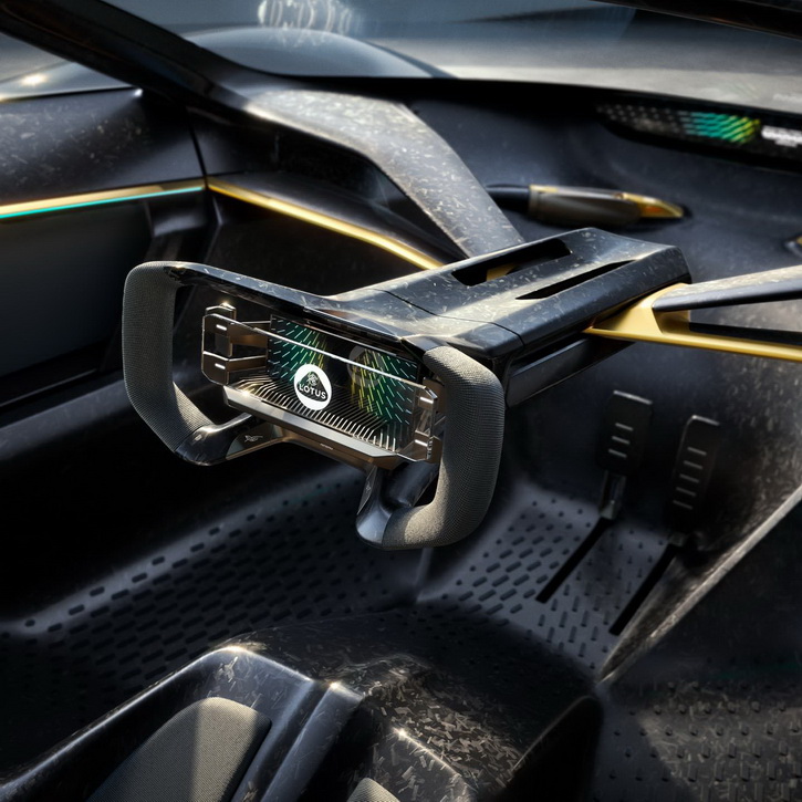 LOTUS ได้พัฒนาระบบขับขี่เฉพาะของตนเองที่เรียกว่า LOTUSWEAR™ ซึ่งเป็นระบบเสมือนจริงที่มีจุดมุ่งหมายเพื่อมอบประสบการณ์ใหม่ให้แก่ผู้โดยสารทุกคน ทำให้รถสามารถสื่อสารกับคนขับและผู้โดยสารได้อย่างราบรื่น สร้างความสปอร์ตได้อย่างเต็มอารมณ์ มาในรูปแบบรถยนต์ 3 ที่นั่ง เพื่อให้ผู้ขับได้อยู่ตำแหน่งตรงกลาง เป็นตำแหน่งการขับขี่ที่ยอดเยี่ยม ตรงตามคอนเซปต์ของรถแข่ง พร้อมเชื่อมโยงผู้ขับให้เข้ากับถนนได้อย่างลึกซึ้งยิ่งขึ้น อาทิ พวงมาลัยที่จะตอบสนองแบบเรียลไทม์ เพื่อให้การรองรับ การยึดเกาะ และการแจ้งเตือนขณะขับขี่ที่เต็มไปด้วยเทคโนโลยีความปลอดภัย เพื่อชูคอนเซ็ปต์การผสมผสานความอนาล็อกให้เข้ากับความดิจิทัลได้เป็นอย่างดี