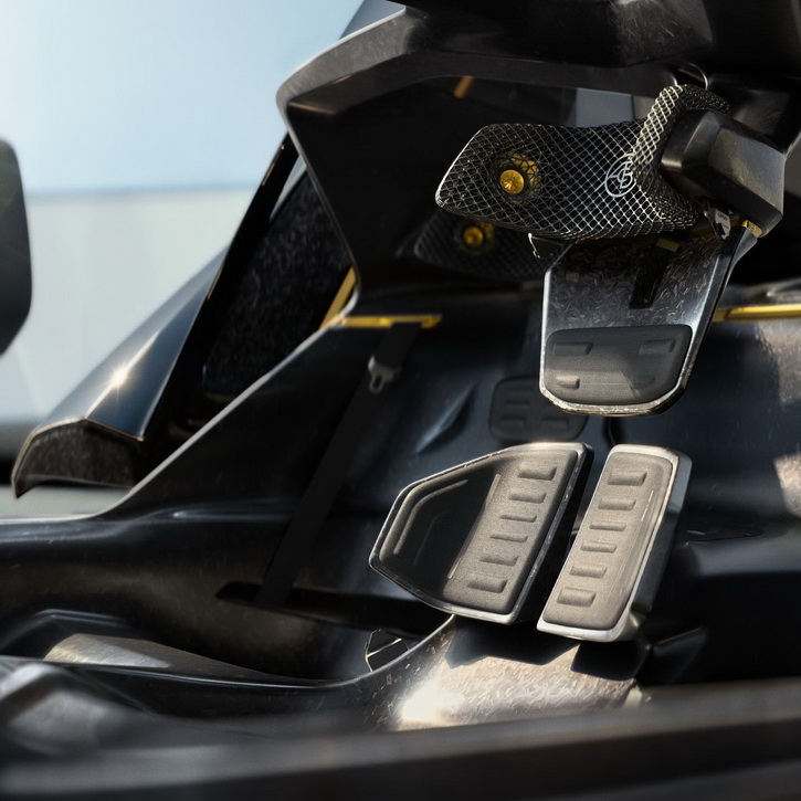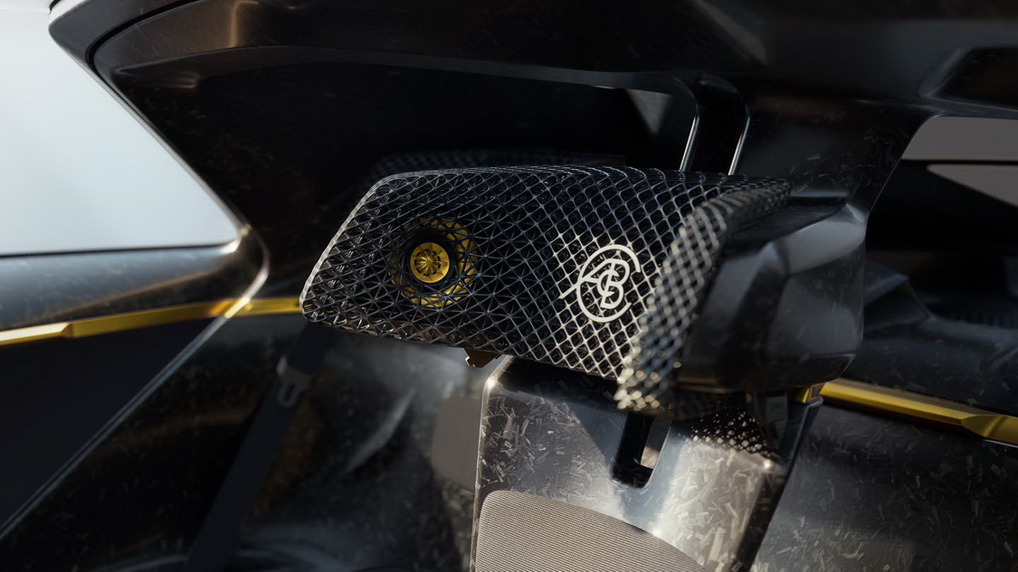 ภายในห้องโดยสารยังมีการดีไซน์ที่เปิดโชว์ชิ้นส่วนให้เห็นกลไกเครื่องยนต์ต่าง ๆ ภายในรถระหว่างขับขี่ มอบประสบการณ์ใหม่อันปราดเปรียว เพื่อให้ผู้โดยสารทุกคนรับรู้ถึงอรรถรสการขับขี่ร่วมกัน นอกจากนี้ยังมอบบรรยากาศเสียงเหนือระดับอย่าง KEF สร้างคุณภาพเสียงตามความต้องการเฉพาะบุคคลสำหรับผู้โดยสารแต่ละคนทั้ง 3 ที่นั่ง