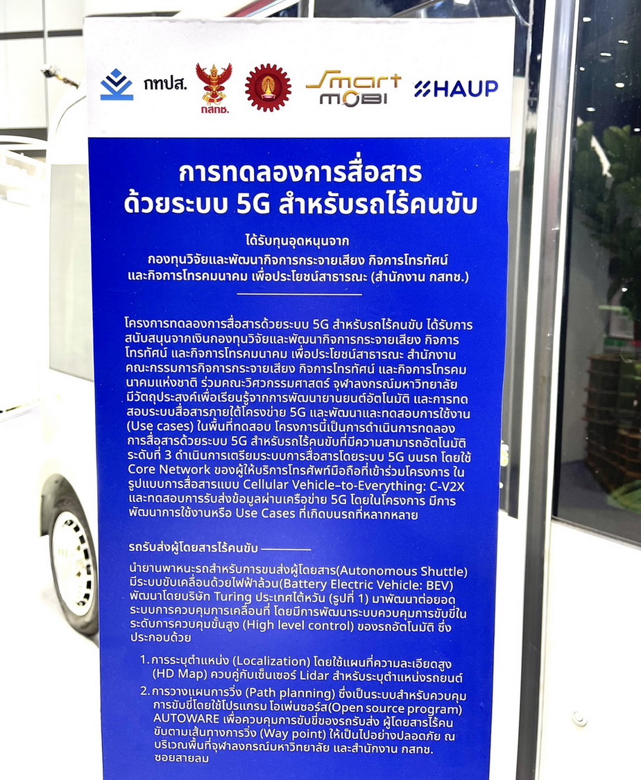 ทั้งนี้ โครงการทดลองการสื่อสารด้วยระบบ 5G สำหรับยานยนต์ไร้คนขับ เป็นโครงการที่ได้รับทุนสนับสนุนจาก กสทช. ผ่านกองทุนวิจัยและพัฒนากิจการกระจายเสียง กิจการโทรทัศน์ และกิจการโทรคมนาคม เพื่อประโยชน์สาธารณะ (กทปส.) เพื่อผลักดันให้มีการนำระบบ 5G มาประยุกต์ใช้ โดยคณะวิศวกรรมศาสตร์ จุฬาลงกรณ์มหาวิทยาลัย เป็นหน่วยงานที่ได้รับทุน และร่วมมือกับ Smart Mobility Research Center (Smart MOBI) และ AIS 5G มาตั้งแต่ปี พ.ศ. 2564 จนได้รถต้นแบบที่ทำงานผ่านระบบ 5G ตามเป้าหมาย