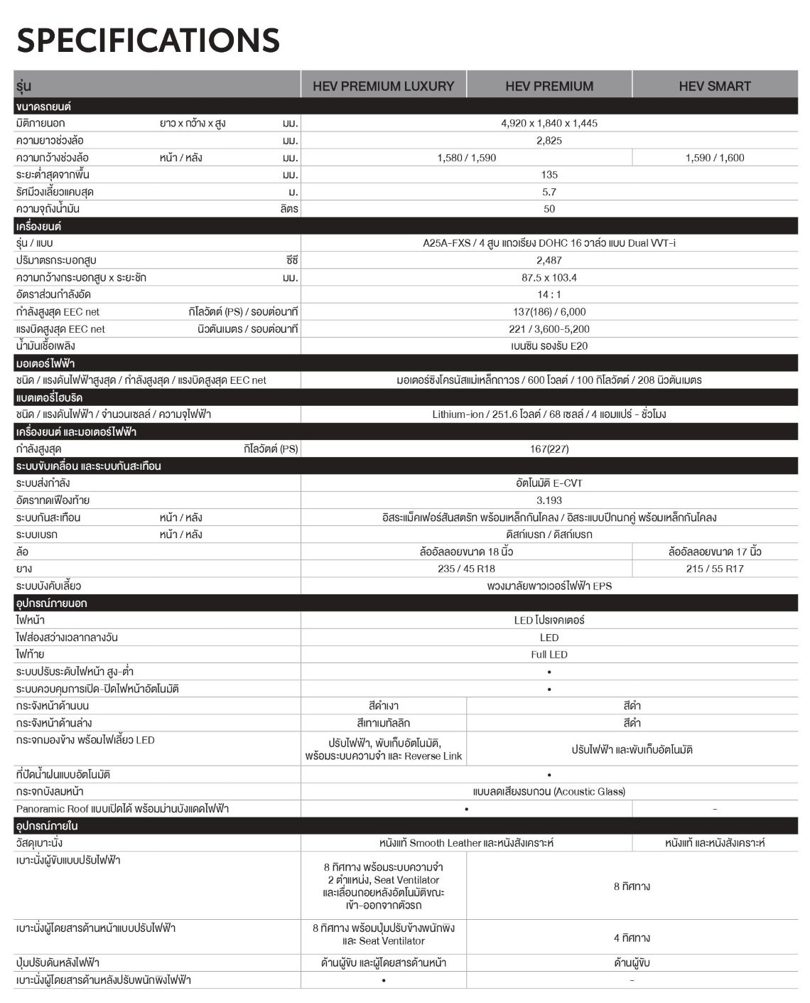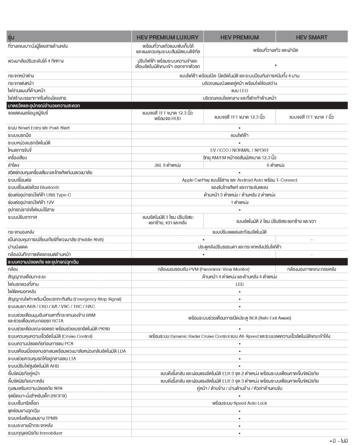รุ่น HEV PREMIUM LUXURY