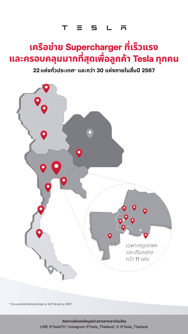 ดูรายละเอียดเพิ่มเติมคลิก : https://www.tesla.com/th_th/supercharger