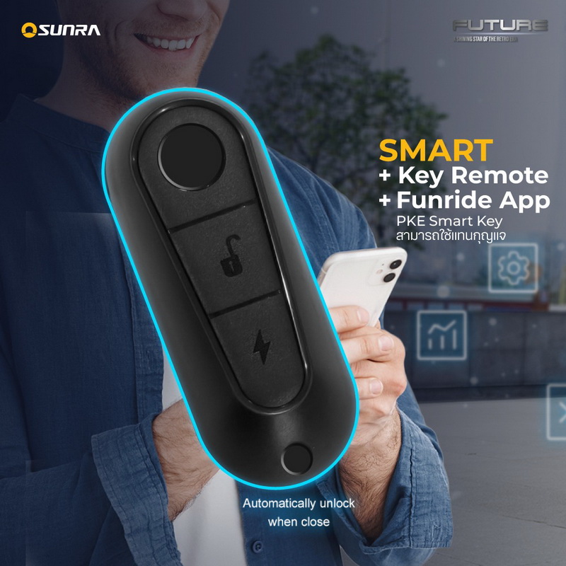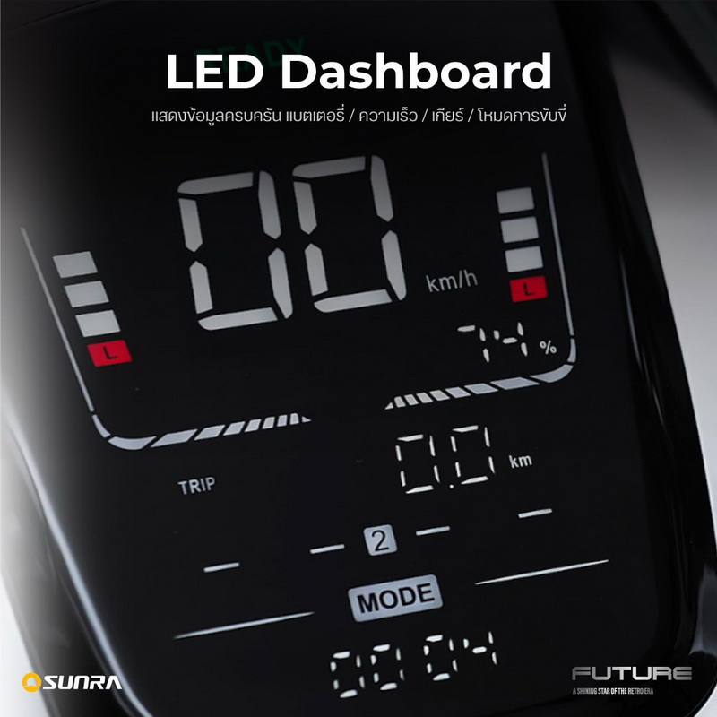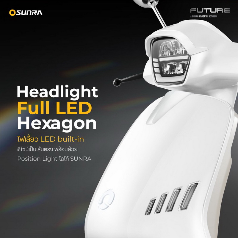 SUNRA EV Thailand เปิดเกมรุกตลาดรถมอเตอร์ไซค์ไฟฟ้าในไทยด้วย SUNRA FUTURE รถมอเตอร์ไซค์ EV สไตล์เรโทร ขุมพลังมอเตอร์ 2500 วัตต์ x แบตเตอรี่ขนาด 72V26Ah ทำความเร็วสูงสุดได้ 75 กม./ชม. วิ่งไกลสุด 85 กม./การชาร์จเต็ม 1 ครั้ง เคาะราคาขาย 53,640 บาท