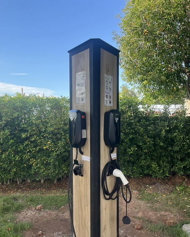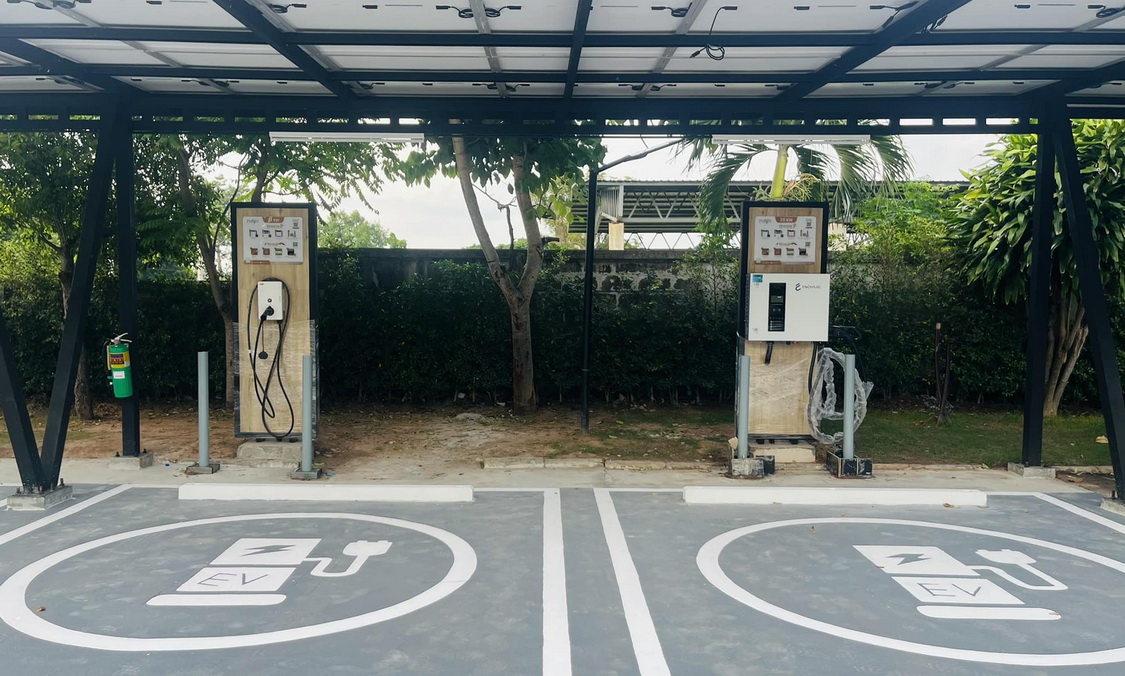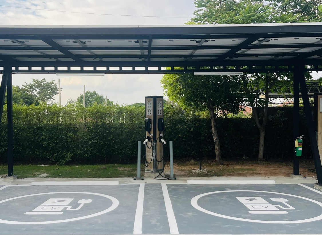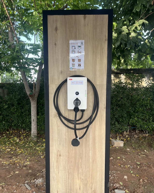 ตัวสถานีชาร์จมีการติดตั้งหลังคาโซลารูฟท็อปเพื่อเก็บพลังงานไว้ชาร์จไฟให้รถยนต์ไฟฟ้าและใช้ภายในโรงแรมด้วย
