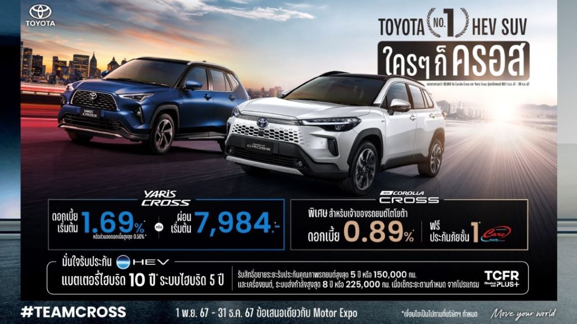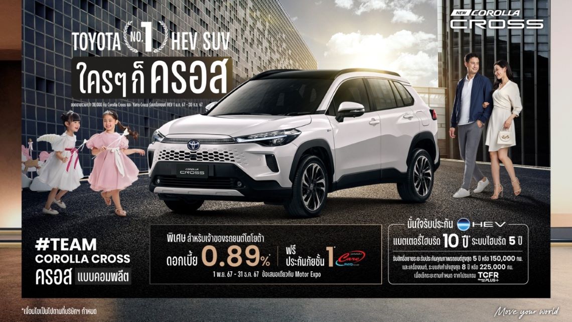ทั้งนี้ บริษัท โตโยต้า มอเตอร์ ประเทศไทย จำกัด ได้ตอกย้ำความเป็นผู้นำด้านยนตรกรรมไฮบริดภายใต้คอนเซปต์ “TOYOTA TRUSTED HYBRID” กับเทคโนโลยีไฮบริดของโตโยต้าที่ผสานระหว่างมอเตอร์ไฟฟ้าและเครื่องยนต์อย่างลงตัว มอบสมรรถนะการขับขี่ยอดเยี่ยม เพิ่มประสิทธิภาพการประหยัดเชื้อเพลิง และเป็นมิตรต่อสิ่งแวดล้อม มีบริการหลังการขายที่ได้มาตรฐาน และมีทีมช่างผู้ชำนาญการด้านระบบไฮบริดของโตโยต้ากว่า 8,000 คน ที่ผ่านการฝึกอบรมจากศูนย์การศึกษาและฝึกอบรมโตโยต้า พร้อมอุปกรณ์การซ่อมรถยนต์ไฮบริดที่ได้มาตรฐาน และความพร้อมด้านอะไหล่ ควบคู่ไปกับระบบการจัดเตรียมชิ้นส่วน ที่มีรองรับนานกว่า 15 ปี และสามารถจัดส่งได้ภายใน 48 ชั่วโมง จากเครือข่ายศูนย์บริการที่ได้มาตรฐานและครบวงจรกว่า 450 แห่งทั่วประเทศ ซึ่งนำมาสู่แคมเปญการสื่อสารใหม่ “โตโยต้า No.1 HEV SUV ใครๆ ก็ครอส”