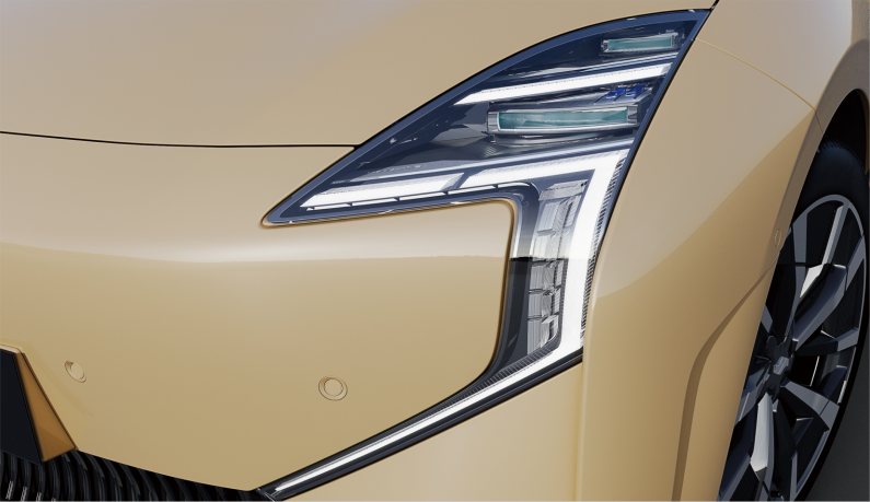 มิติตัวรถมีขนาด 4,550 มม. ใกล้เคียงกับรถเอมพีวี ระยะฐานล้อมีขนาด 2,800 มม. ไฟหน้ามาพร้อมจุดเด่น ด้วยการออกแบบเลนส์ไฟหน้า LED ดีไซจ์นทรงสามเหลี่ยม บางพิเศษเพียง 15 มม. พร้อมหลอดไฟ LED มากถึง 240 ดวง ไฟ Daytime Running Light ให้ความรู้สึกเหมือนปีกเครื่องบิน ไฟท้าย LED ทรงแนวยาว พร้อมสปอยเลอร์หลังในตัวบนฝาท้ายลาดเทลงตามหลักอากาศพลศาสตร์ ที่จับประตูแบบซ่อน มีกระจกสามเหลี่ยมที่เสา A-Pillar และ C-Pillar พร้อมล้ออัลลอยขนาด 19 นิ้ว ลวดลายสปอร์ท ที่สำคัญ ตัวรถผ่านมาตรฐานความปลอดภัยระดับ 5 ดาวจาก E-NCAP
