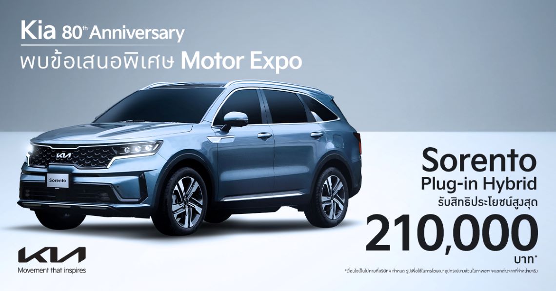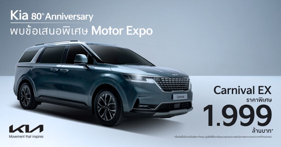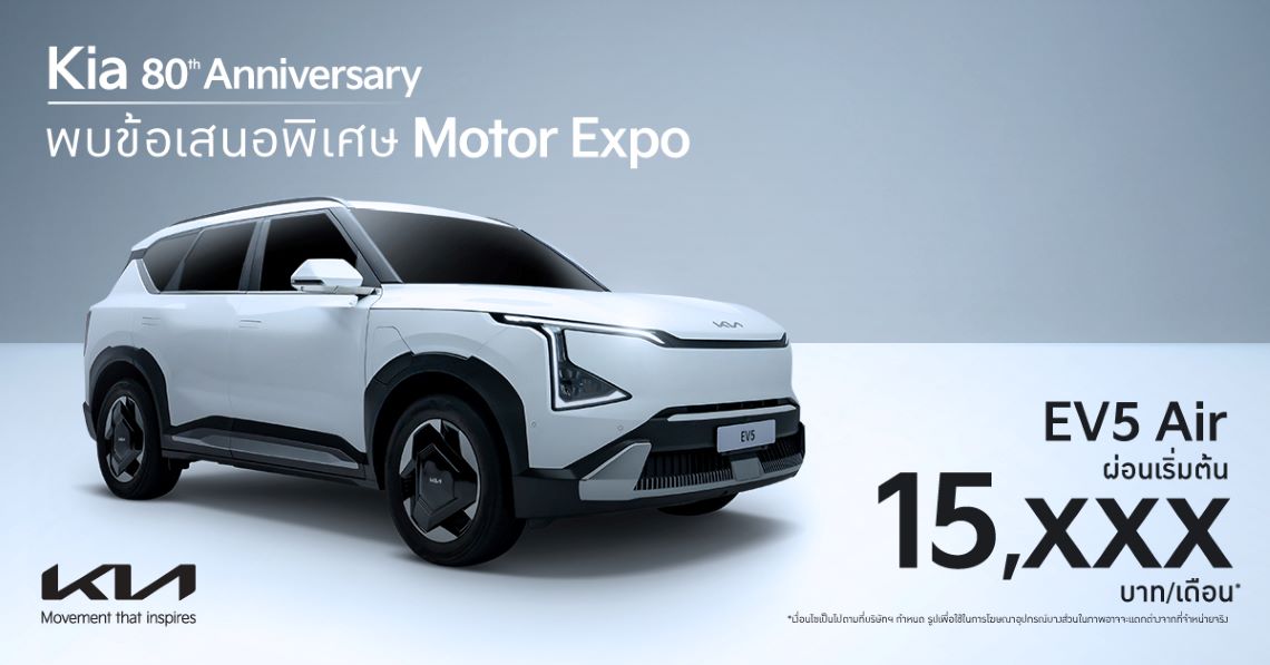 (กรุงเทพฯ) 8 พฤศจิกายน 2567 – เกีย เซลส์ (ประเทศไทย) ฉลองครบรอบ 80 ปีก่อตั้งแบรนด์เกีย มอบข้อเสนอ Motor Expo 2024 สุดคุ้มครอบคลุมรถยนต์ทั้ง 4 รุ่นหลัก The Kia EV5 The Kia EV9 The Kia Carnival และ The Kia Sorento โดยเกียได้ยกขบวนรถเอสยูวีและเอ็มพีวีอีกหลากหลายรุ่นครอบคลุมทุกไลน์อัปไปจัดแสดงที่งาน ไม่ว่าจะเป็น The Kia Carnival ทุกรุ่นย่อย มีให้เลือกทั้งแบบ 11 และ 7 ที่นั่ง The Kia EV9 GT-Line AWD พร้อมด้วย The Kia Sorento รุ่น Premium HEV และรุ่น Premium Plus PHEV ผู้ที่สนใจสามารถร่วมสัมผัสยนตรกรรมต่าง ๆ ได้ ณ บูธเกียหมายเลข A22 อิมแพ็ค ชาเลนเจอร์ ฮอลล์ 1 เมืองทองธานี ในวันที่ 29 พฤศจิกายน – 10 ธันวาคม 2567 พร้อมกันนี้ “เกีย” ได้มอบข้อเสนอสุดคุ้มค่าให้แก่ผู้สนใจจับจองผ่านทางดีลเลอร์ทั่วประเทศ ตั้งแต่วันที่ 1 พฤศจิกายน ถึง 31 ธันวาคม 2567