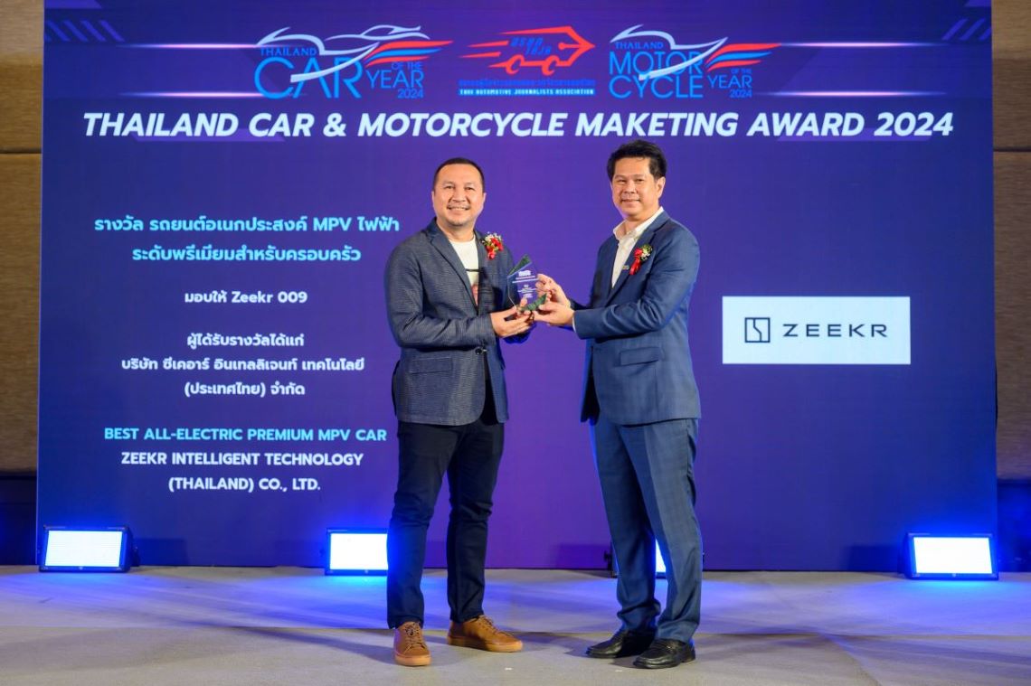 “ZEEKR 009” เอ็มพีวีไฟฟ้าลักชูรี จาก ZEEKR คว้ารางวัล รถยนต์อเนกประสงค์ MPV ไฟฟ้าระดับพรีเมียมสำหรับครอบครัว ในงานประกาศรางวัลรถยนต์ยอดเยี่ยมแห่งปี Thailand Car of the Year 2024 โดยการตัดสินจากคณะกรรมการบริหารสมาคมผู้สื่อข่าวรถยนต์และรถจักรยานยนต์ไทย (สรยท.)
