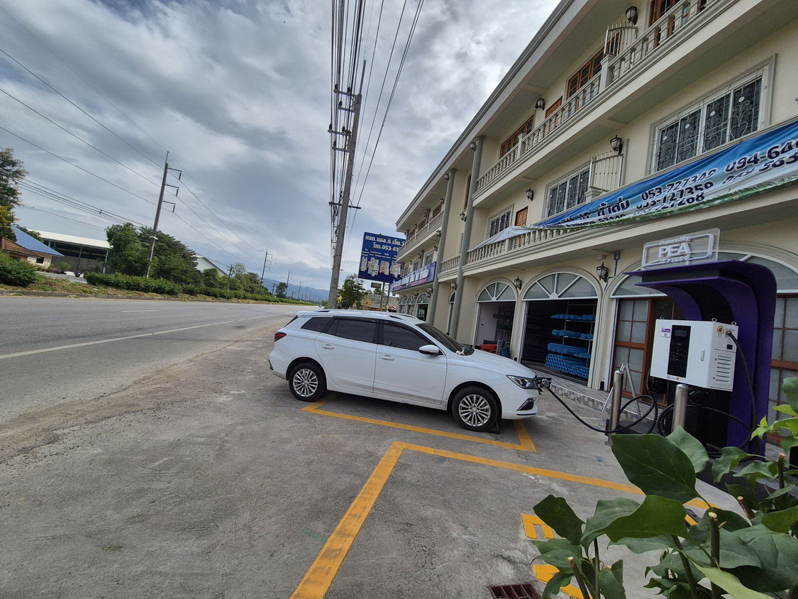 อยู่เกือบสุดเขตประเทศไทย ก่อนข้ามโขงไปประเทศลาว แต่ที่เชียงของก็มีสถานีชาร์จรถยนต์ไฟฟ้าไปเปิดให้บริการแล้ว 4-5 เจ้า ล่าสุดก็เป็นสถานีร่วมเครือข่าย VOLTA CONNEXT ของ PEA VOLTA เปิดอยู่หน้าศูนย์ค้าปลีกค้าส่งวัสดุก่อสร้าง เอส ดับเบิ้ลยู เอ็น เค ที่ อ.เชียงของ จ.เชียงราย ก็เลยใช้ชื่อว่า “สถานี SWNK” เพื่อให้หาพิกัดเจอกันง่ายๆ