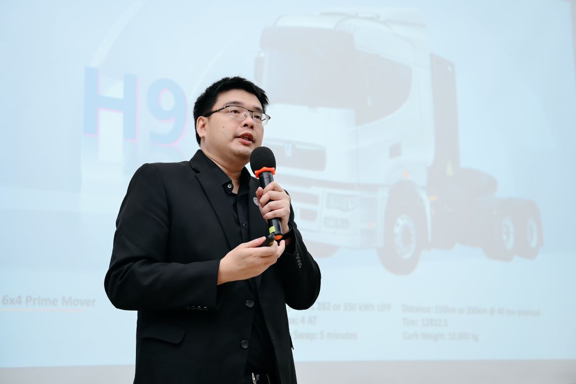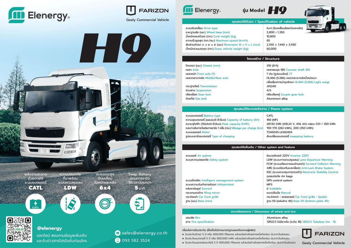 คุณ Sylvester Lee Co-founder และ Chief Technology Officer บริษัท เอลเอเนอร์จี้จำกัด กล่าวถึง Farizon H9 Electric Prime Mover ว่าถูกพัฒนาขึ้นภายใต้มาตรฐานการผลิตระดับโลกของ Geely Holding Group เป็นรถหัวลากไฟฟ้าระบบขับเคลื่อนไฟฟ้าประสิทธิภาพสูง รองรับการบรรทุกน้ำหนักได้มากถึง 80 ตัน ด้วยแบตเตอรี่ลิเธียมฟอสเฟตจาก CATL มีความจุที่ให้ระยะทางวิ่งต่อการชาร์จสูงสุดถึง 350 กิโลเมตร ติดตั้งระบบความปลอดภัยอัจฉริยะครบครัน ทั้งระบบเบรก ABS, EBS และระบบช่วยขับขี่ขั้นสูง ภายในห้องโดยสารออกแบบตามหลักกายศาสตร์ พร้อมหน้าจอดิจิทัลขนาดใหญ่และระบบปรับอากาศอัตโนมัติ นอกจากนี้ยังมีระบบบริหารจัดการพลังงานอัจฉริยะช่วยเพิ่มประสิทธิภาพการใช้พลังงานสูงสุด