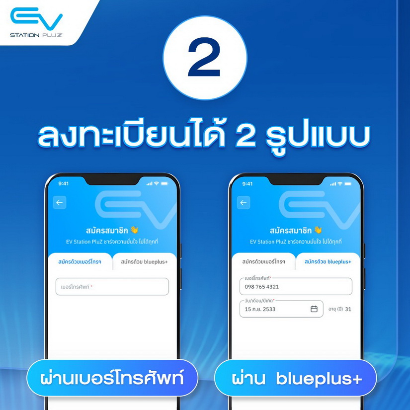 สมัครสมาชิก ลงทะเบียนได้ 2 แบบ สมัครผ่านเบอร์โทรศัพท์ และผ่าน blueplus+