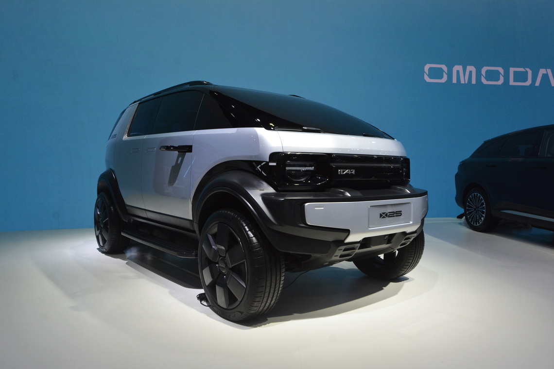 iCar X25 (ไอคาร์ เอกซ์ 25) รถเอสยูวีดีไซจ์นล้ำอนาคต ขับเคลื่อนด้วยพลังงานไฟฟ้า BEV และ REEV มีล้อขนาดใหญ่อยู่ทั้ง 4 มุม ติดตั้งแผ่นป้องกันใต้กันชนหน้า และมีระยะห่างจากพื้นสูงเพื่อการใช้งานสมบุกสมบัน เสา A ลาดเอียงมาก ส่วนเสา B ซ่อนได้อย่างลงตัว มือจับประตูซ่อนแบบรถไฟฟ้า ประตูท้ายมียางอะไหล่ 21 นิ้ว