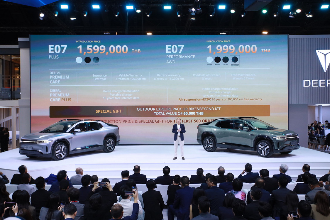 CHANGAN เปิดตัว DEEPAL E07 รถ SUV ไฟฟ้าแห่งอนาคต ใน Motor Expo 2024 เคาะราคาเริ่มต้นในรุ่น DEEPAL E07 Plus 1,699,000 บาท ตัวท็อป DEEPAL E07 รุ่น Legacy ราคา 2,990,000 - 3,090,000 บาท พร้อมเดินหน้าขยายธุรกิจตามแผนกลยุทธ์ระดับโลก Vast Ocean Plan เพื่อขับเคลื่อนการเติบโตอย่างยั่งยืน