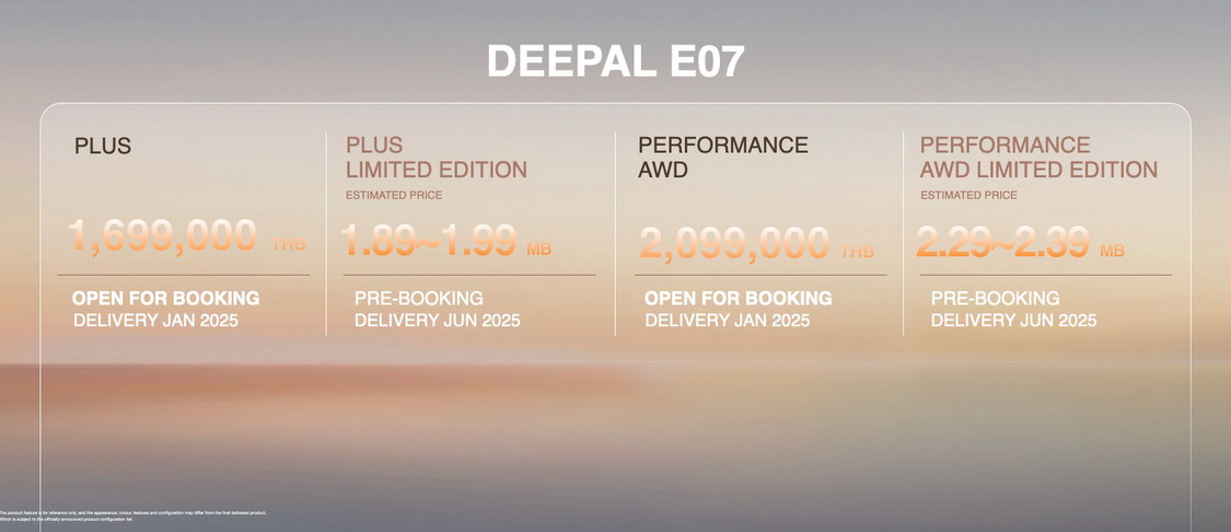 DEEPAL E07 Performance AWD Limited Edition : ราคา 2,290,000 - 2,390,000 บาท (เปิดจองล่วงหน้า)