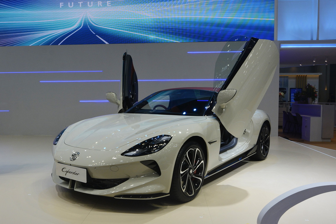 อีกหนึ่งไฮไลท์กับ NEW MG CYBERSTER สัญลักษณ์ยนตรกรรมที่ได้รับแรงบันดาลใจจากรถสปอร์ตโรดสเตอร์รุ่นคลาสสิกที่สร้างชื่อให้กับ เอ็มจี อย่าง MGB Roadster สู่ตำนานสปอร์ตโรดสเตอร์พลังงานไฟฟ้า 100% รุ่นแรกและเป็นรุ่นเรือธงของ เอ็มจี ที่ถ่ายทอดสปอร์ต ดีเอ็นเอไว้ในงานออกแบบอย่างเต็มขั้น มาพร้อมกับสีใหม่ โมเดิร์น เบจ (MODERN BEIGE) ที่คงความโดดเด่นทุก ๆ ด้านไว้อย่างครบถ้วน ทั้งการออกแบบที่สะกดทุกสายด้วยประตูปีกนกแบบปุ่มสัมผัสเปิด-ปิดอัตโนมัติ หลังคาซอฟต์ท็อปสีแดง อัดแน่นด้วยขุมพลังมอเตอร์คู่ ระบบขับเคลื่อน 4 ล้อ ให้พละกำลังสูงสุด 544 แรงม้า (400 กิโลวัตต์) แรงบิดสูงสุด 725 นิวตันเมตร สามารถทำอัตราเร่ง 0 – 100 กิโลเมตรต่อชั่วโมง ภายในเวลา 3.2 วินาที มาพร้อมแบตเตอรี่ Ultra-Thin Rubik's Cube ความจุ 77 kWh วิ่งได้ระยะทาง 503 กิโลเมตร ต่อการชาร์จ 1 ครั้ง ตามมาตรฐาน NEDC