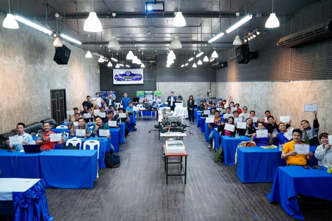 สำนักงานนวัตกรรมแห่งชาติ (องค์การมหาชน) หรือ NIA ภายใต้สังกัดกระทรวงการอุดมศึกษา วิทยาศาสตร์ วิจัยและนวัตกรรม (อว.) ร่วมกับมหาวิทยาลัยหอการค้าไทย จัดกิจกรรมพิธีปิดโครงการพัฒนาทักษะ ความรู้ ความสามารถ (Up Skill) ของบุคลากรในภาคอุตสาหกรรม สาขาธุรกิจนวัตกรรมยานยนต์ไฟฟ้าและเทคโนโลยีเกี่ยวเนื่อง ณ วิทยาลัยเทคโนโลยีวิศวกรรมแหลมฉบัง เมื่อวันที่ 29 พฤศจิกายน 2567 โดยมี ดร.สุรอรรถ ศุภจัตุรัส รองผู้อำนวยการด้านเศรษฐกิจและสังคม NIA เป็นประธานในพิธีปิดร่วมกับ ดร.มณิสรา บารมีชัย คณบดีคณะวิศวกรรมศาสตร์ มหาวิทยาลัยหอการค้าไทย และมอบเกียรติบัตรแก่ผู้เข้าร่วมอบรมทั้ง 30 คน พร้อมทั้งถ่ายรูปกับผู้เข้าร่วมอบรม