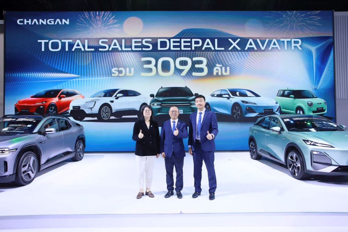 CHANGAN ได้รับการตอบรับที่ล้นหลามในงาน มหกรรมยานยนต์ไทย ครั้งที่ 41 (Thailand International Motor Expo 2024) ด้วยยอดขายทะลุ 3,093 คัน เป็น DEEPAL 2,756 คัน AVATR 337 คัน สะท้อนถึงความมั่นใจของผู้บริโภคใน CHANGAN ในการเป็นผู้นำรถยนต์ไฟฟ้าที่ผสมผสานนวัตกรรมระดับโลกเข้ากับการเคลื่อนที่ที่ยั่งยืนเพื่ออนาคต