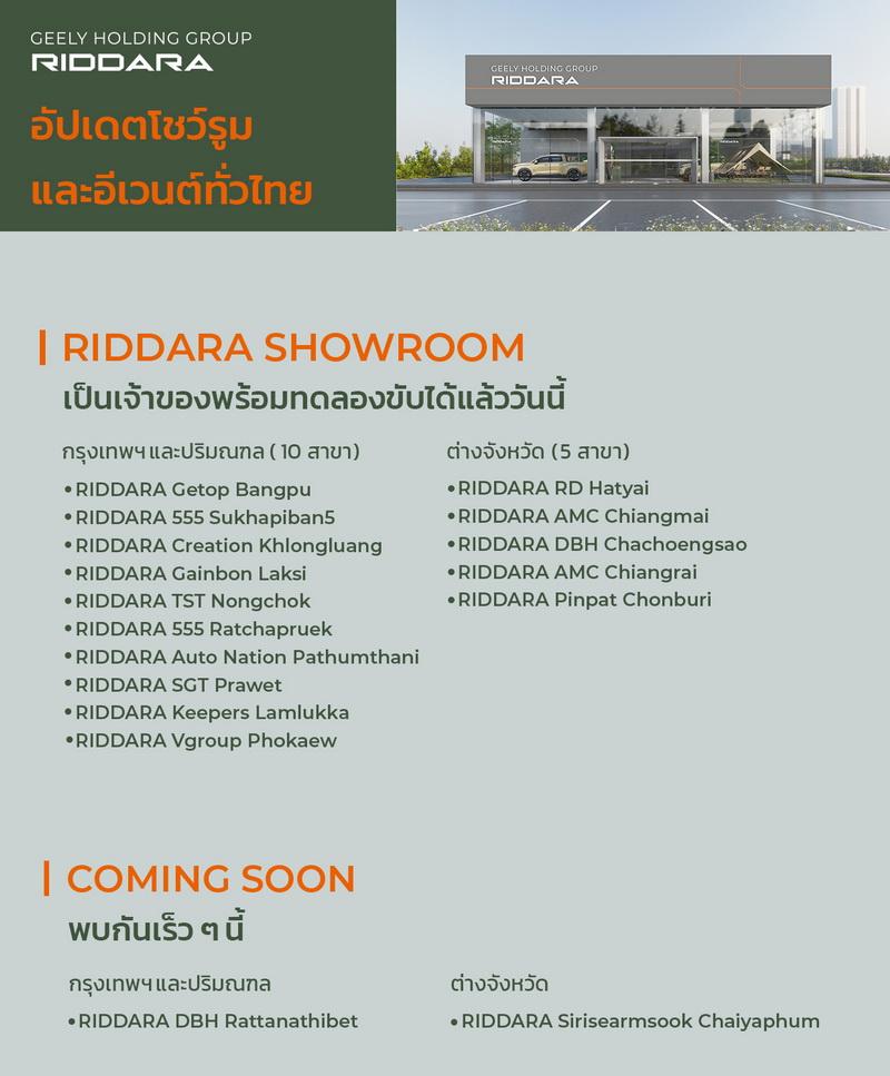 ด้านบริการก็มีการเตรียมการมาดี ล่าสุดอัปเดตว่ามี RIDDARA Showroom เปิดแล้ว 10 แห่งในกรุงเทพและปริมณฑล