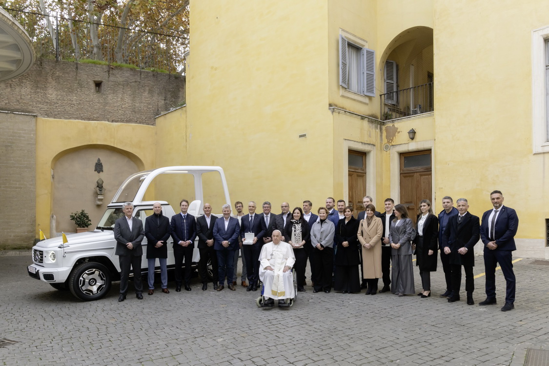 ในพิธีส่งมอบ Ola Källenius ซีอีโอหรือประธานคณะกรรมการบริหาร Mercedes-Benz Group AG กล่าวขอบคุณสมเด็จพระสันตะปาปาฟรานซิสและทุกฝ่ายที่เกี่ยวข้อง และเน้นย้ำถึงกลยุทธ์ทางธุรกิจที่ยั่งยืนของ Mercedes-Benz ว่า