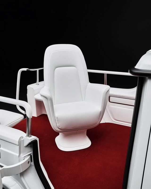 ด้านหลัง เบาะนั่งถูกแทนที่ด้วยเบาะนั่งเดี่ยว วางตำแหน่งอยู่ตรงกลางรถ ตัวเบาะสามารถปรับระดับความสูงได้ หมุนได้ ทำให้สามารถเคลื่อนที่ได้อย่างยืดหยุ่นและตอบสนองต่อผู้ชมจากมุมที่แตกต่างกัน ด้านหลังมีที่นั่งเดี่ยว 2 ที่นั่งอยู่ด้านซ้ายและขวาสำหรับผู้ติดตามพระสันตปาปา
