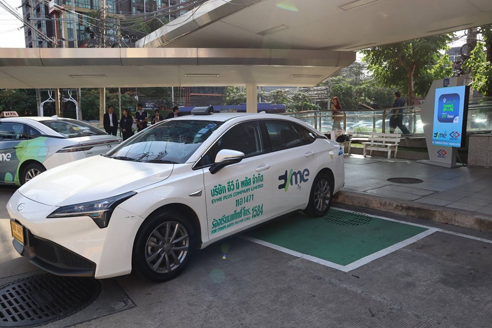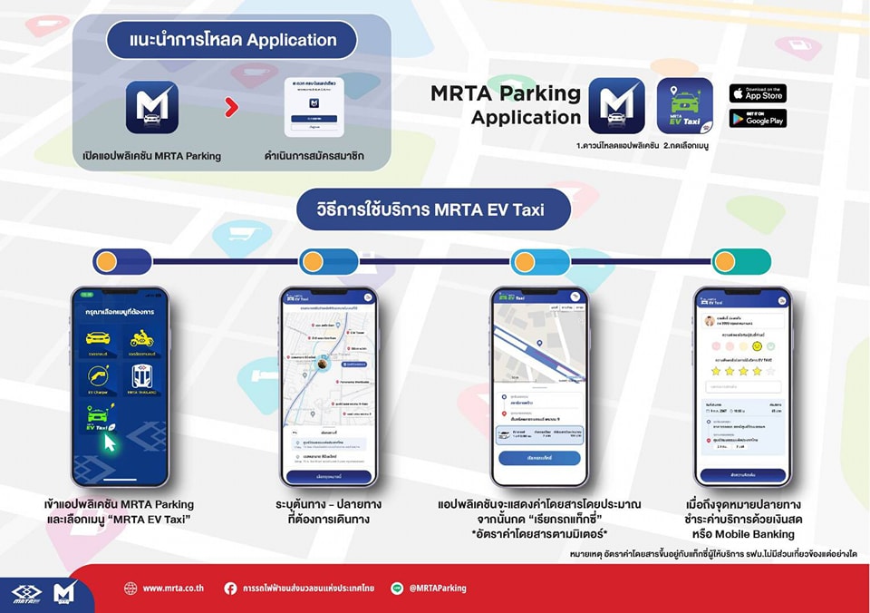 ในการนี้ รฟม. ได้จัดทำโครงการ MRTA Taxi EV by MRTA Parking Application (sPark EV Terminal App) โดยจับมือกับพันธมิตร บริษัท อีวี มี พลัส จำกัด (EVme) ในการให้บริการรถแท็กซี่ไฟฟ้า (Taxi EV) ผ่านแพลตฟอร์มแอปพลิเคชัน MRTA Parking ซึ่งเป็นแอปพลิเคชันหลักในการให้บริการที่จอดรถของ รฟม. โดยแอปพลิเคชันจะจับรัศมีรถแท็กซี่ไฟฟ้าที่ลงทะเบียนไว้กับ EVme ในระยะ 500 เมตร ผู้โดยสารสามารถเรียกรถและระบุจุดรับ-ส่ง ได้ที่อาคารและลานจอดรถ รวมถึงสถานีรถไฟฟ้า ที่กำหนดเป็นจุดให้บริการ MRTA Taxi EV พร้อมทั้งสามารถตรวจสอบค่าโดยสารโดยประมาณได้อย่างสะดวกสบายผ่านหน้าจอในแอปพลิเคชัน