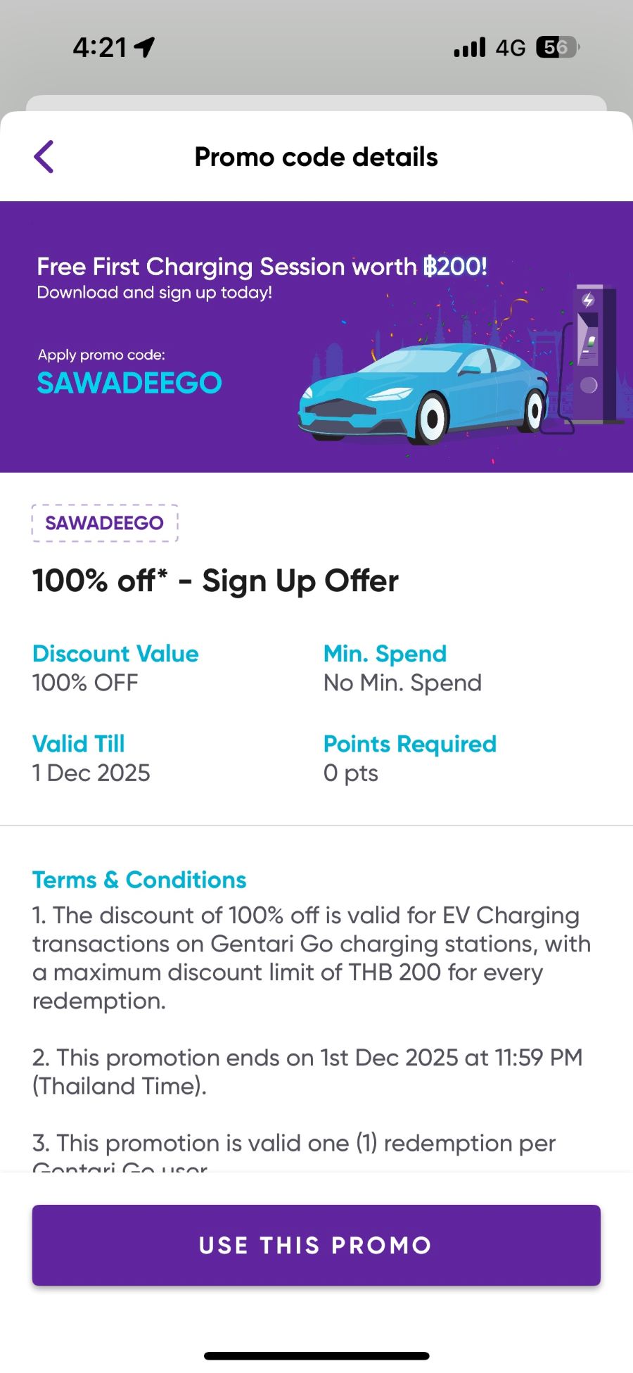 ในโอกาสพิเศษนี้ ‘Gentari Go’ ได้มอบโปรโมชั่นสุดพิเศษ สำหรับผู้ใช้งาน 1,000 รายแรก รับฟรีค่าชาร์จ สูงสุด 200 บาท โดยไม่มีค่าใช้จ่ายขั้นต่ำ — ‘Gentari Go’ มุ่งมั่นที่จะทำให้การเดินทางด้วยยานยนต์ไฟฟ้าสะดวกสบาย เข้าถึงได้ และยั่งยืนมากขึ้นทั่วทั้งภูมิภาค