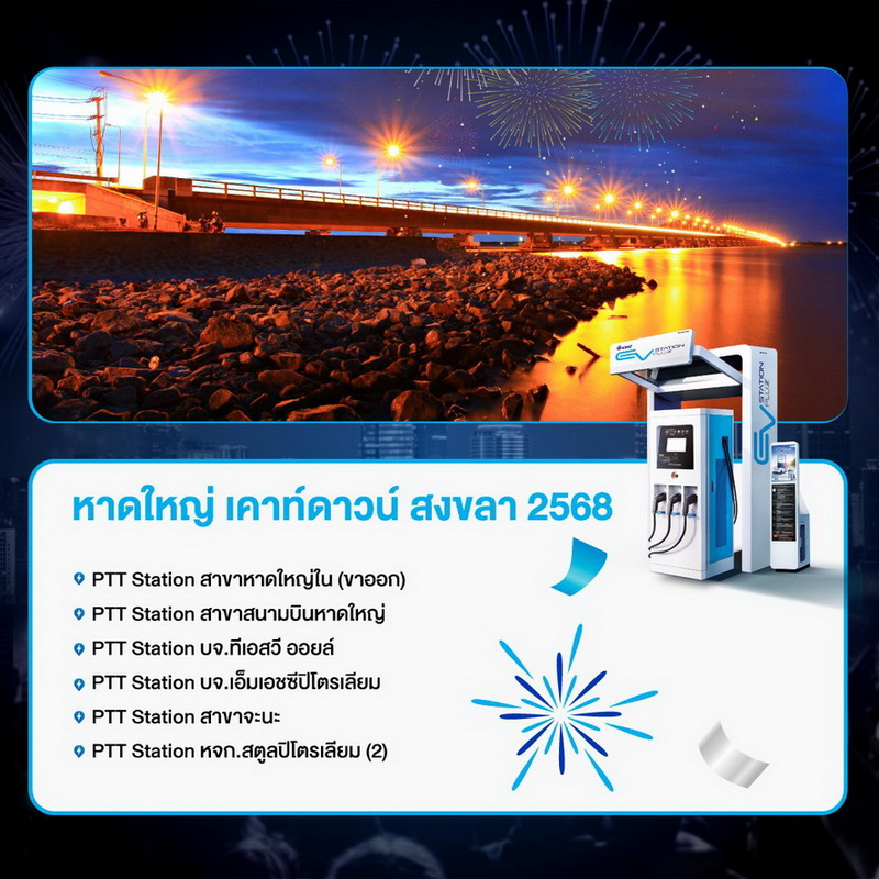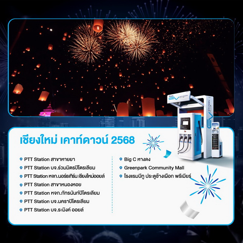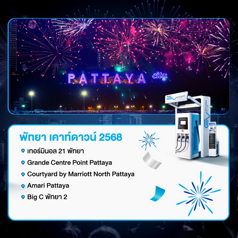 EV Station PluZ เปิดพิกัดสถานีชาร์จใกล้สถานที่เคาท์ดาวน์ยอดนิยมทั่วประเทศต้อนรับเทศกาลปีใหม่ ทั้งในกรุงเทพ ภาคตะวันออก ภาคเหนือ ภาคอีสาน และภาคใต้ ไว้ดังนี้